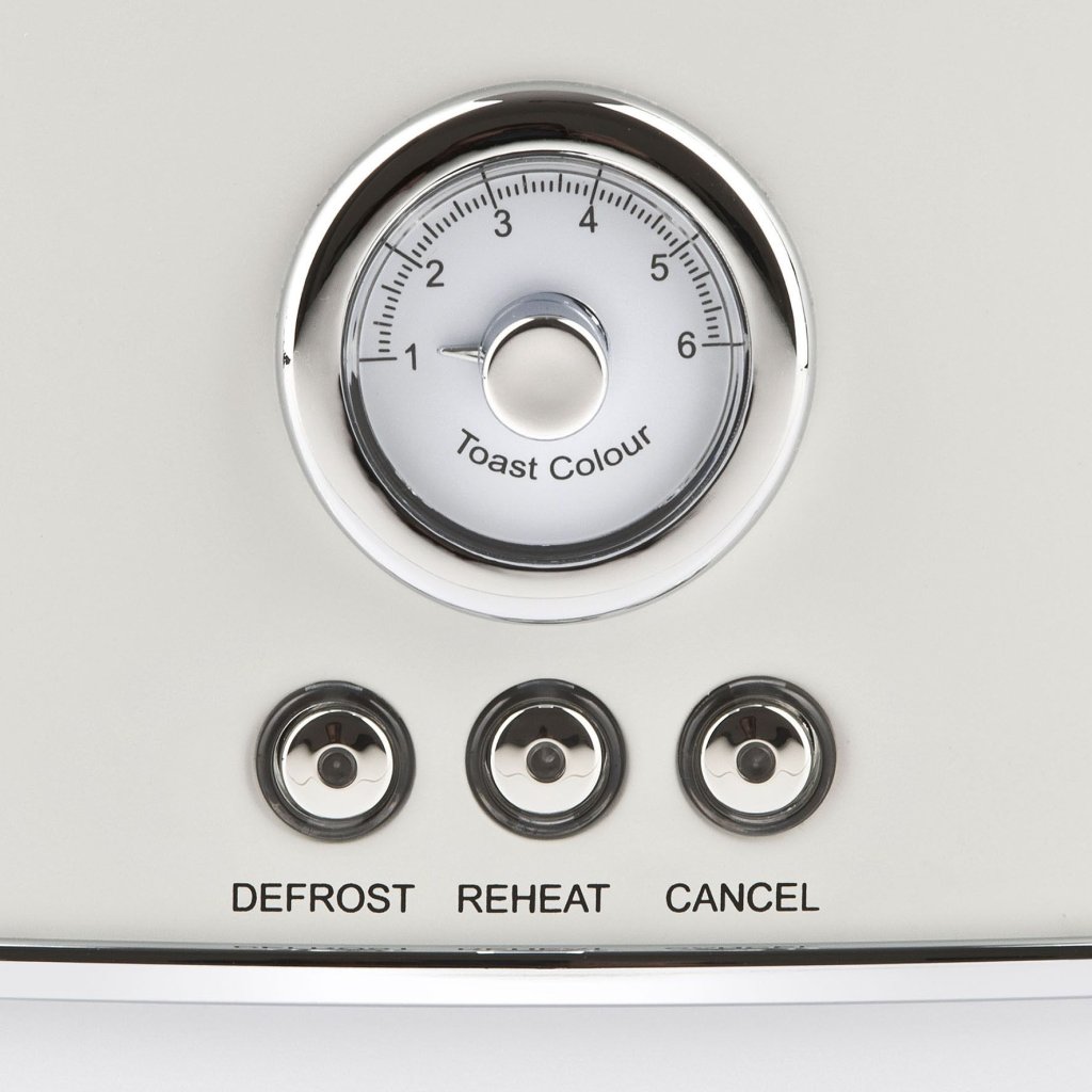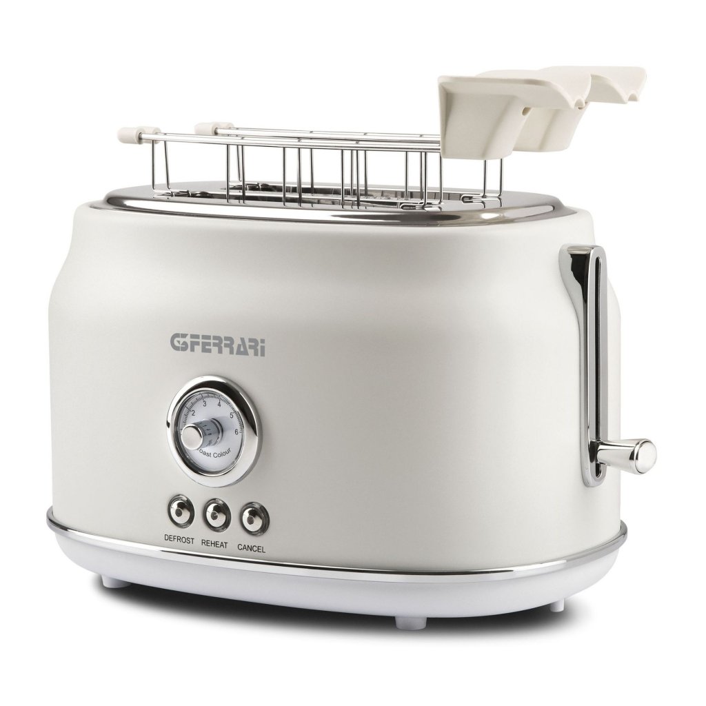 - Liniile ușor rotunjite și dimensiunile compacte fac din toaster un plus atractiv atât pentru bucătăriile moderne, cât și pentru cele clasice