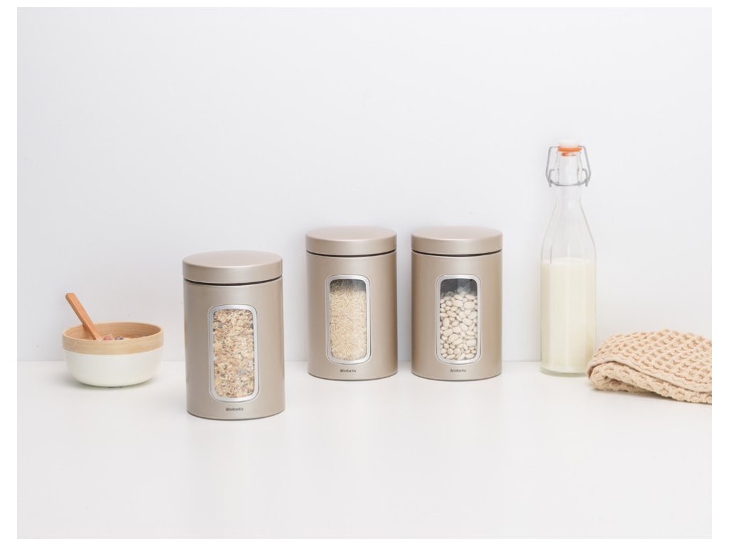Borcan depozitare pentru bucătărie WINDOW CANISTER, set de 3 buc, 1,4 l, șampanie, Brabantia