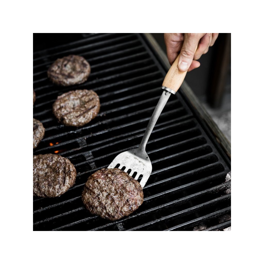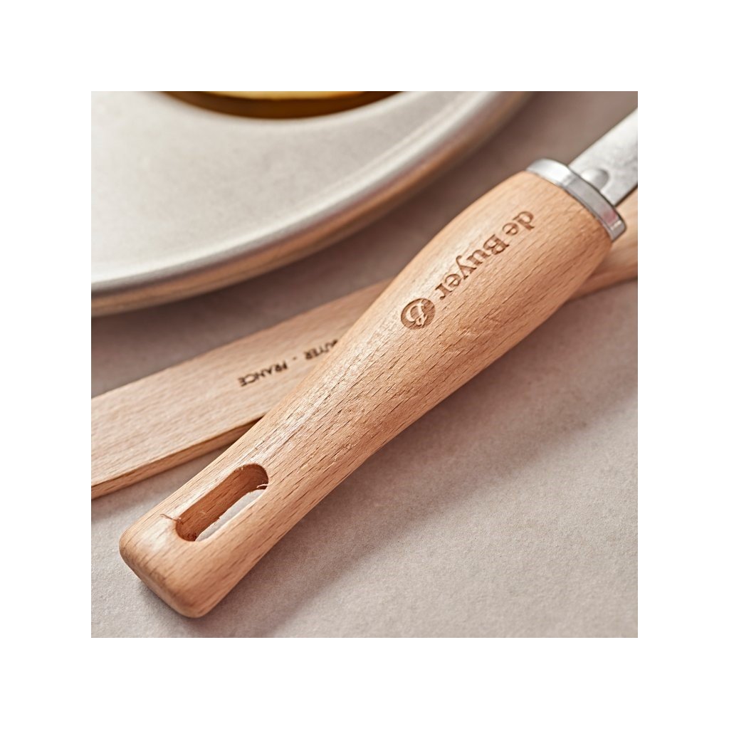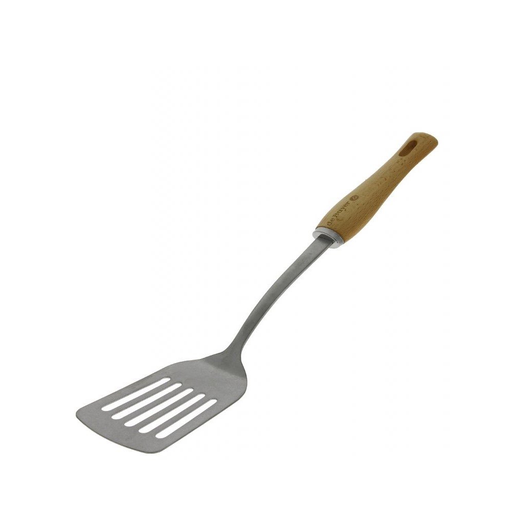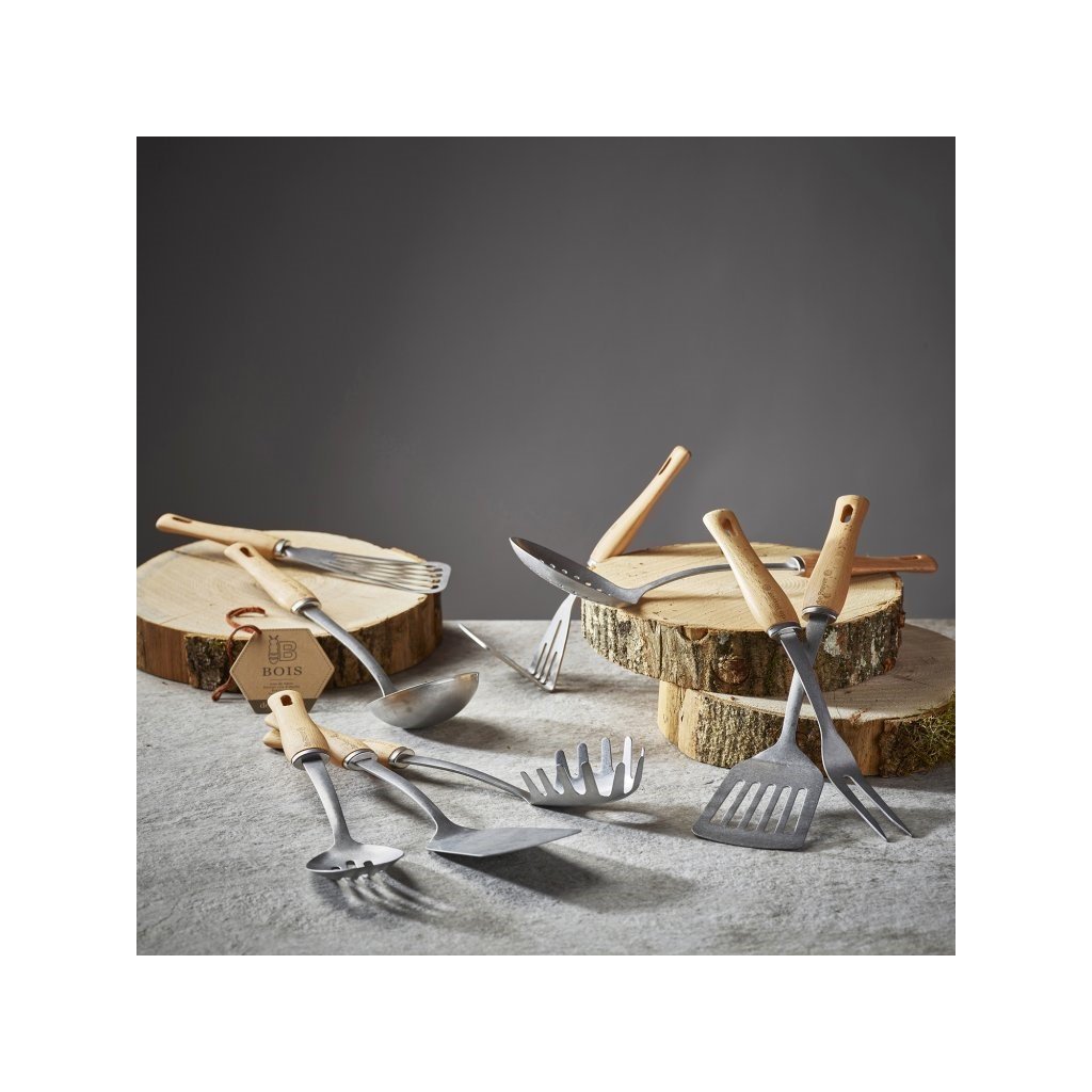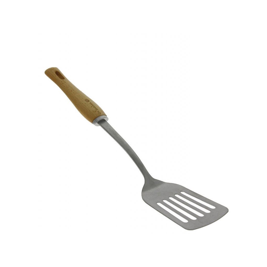 Clasicul francez de Buyer vine cu o nouă gamă de ustensile de gătit și ajutoare B Bois, într-o combinație de oțel inoxidabil și lemn de fag. Paleta pentru întors cu găuri permite ridicarea și întoarcerea ușoară chiar și a mâncărurile delicate, cum ar fi peștele, ouăle, clătitele sau chiftelele. Excesul de lichid, cum ar fi uleiul, se scurge prin găurile din centru.