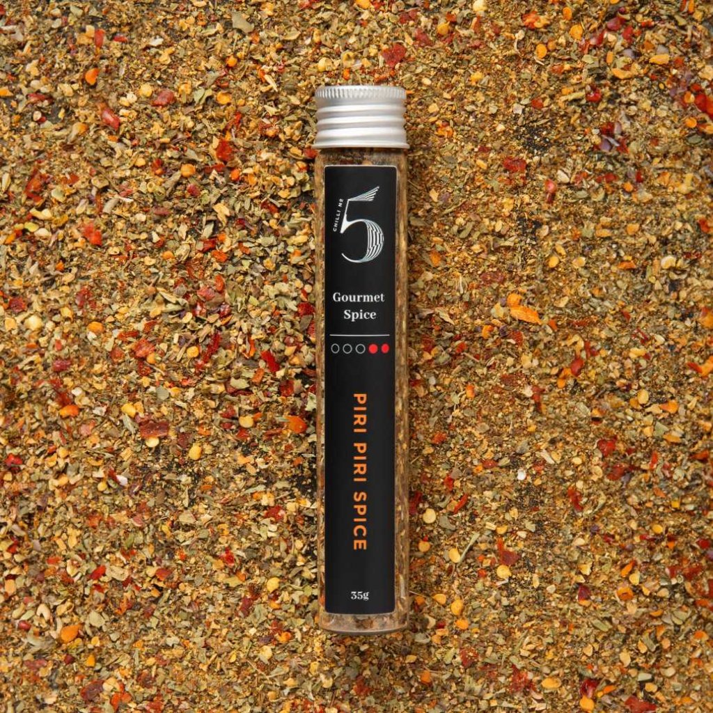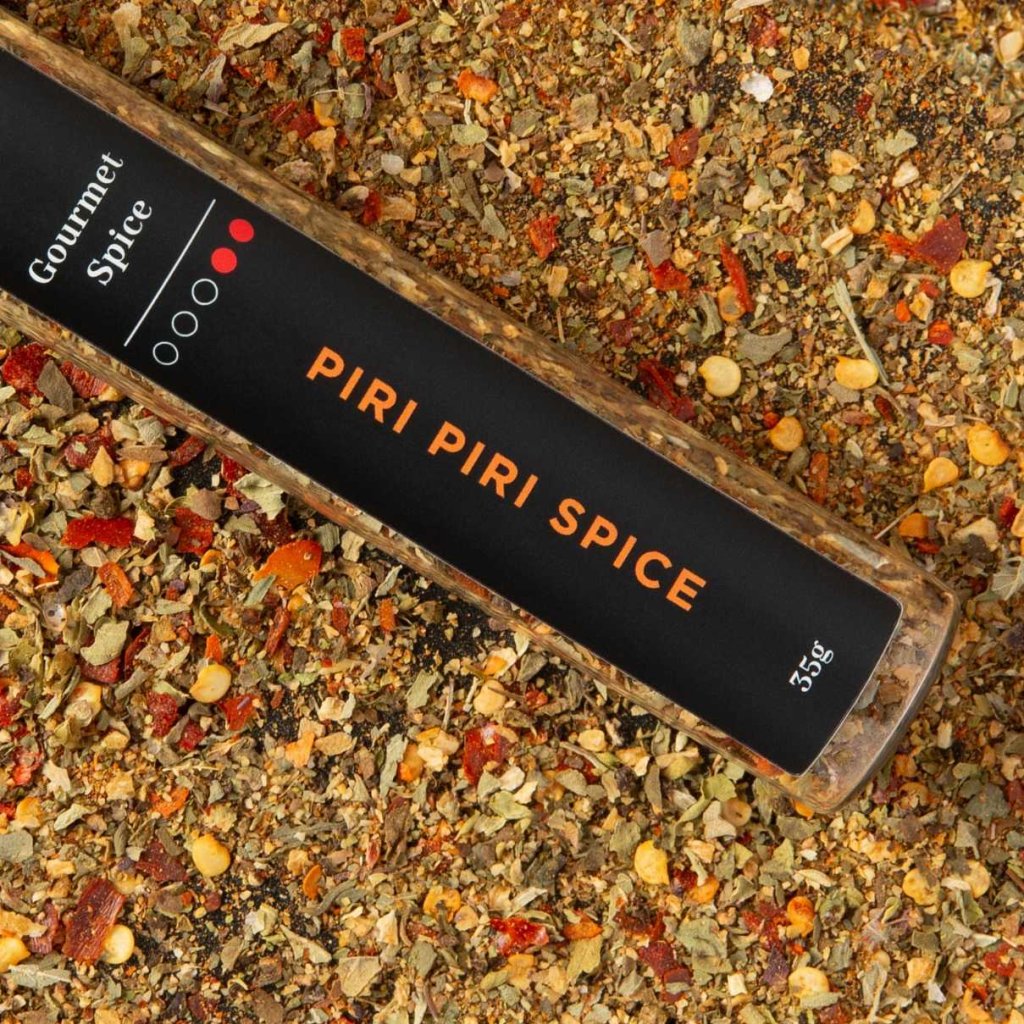 - PIRI PIRI SPICE de la Chilli No5 este un amestec mirodenii universal inspirat de bucătăria portugheză, care va adăuga o notă picantă, dulce-acrișoară și sărată preparatelor tale.