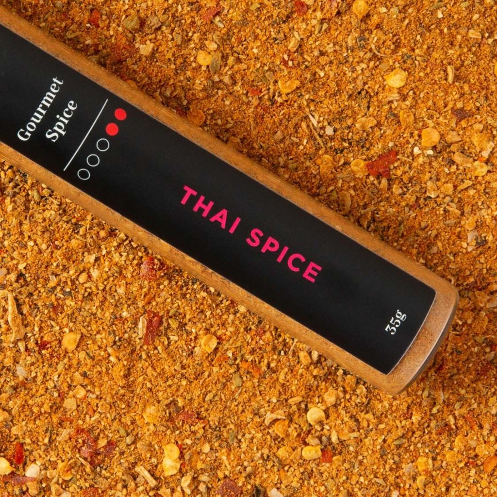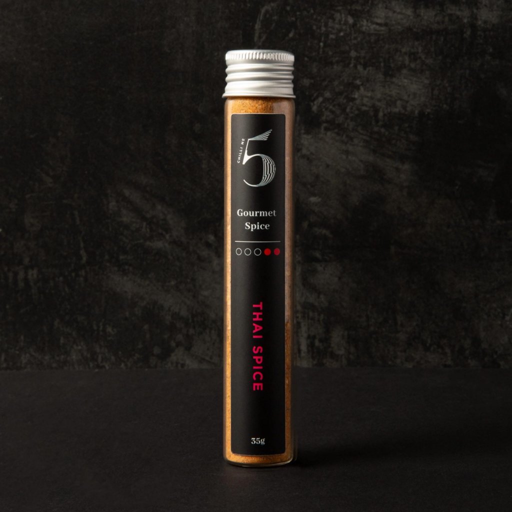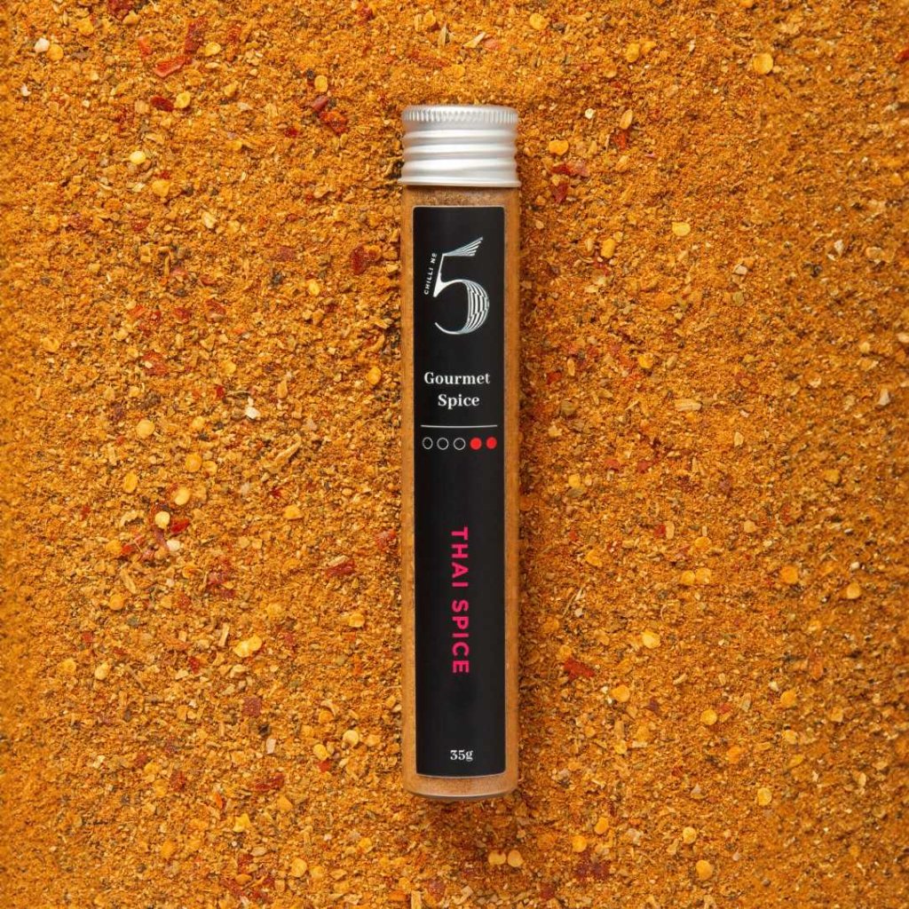 - THAI SPICE de la Chilli No5 este un amestec mirodenii gourmet inspirat de bucătăria thailandeză, care aduce o aromă autentică și o savoare distinctă fiecărui fel de mâncare.