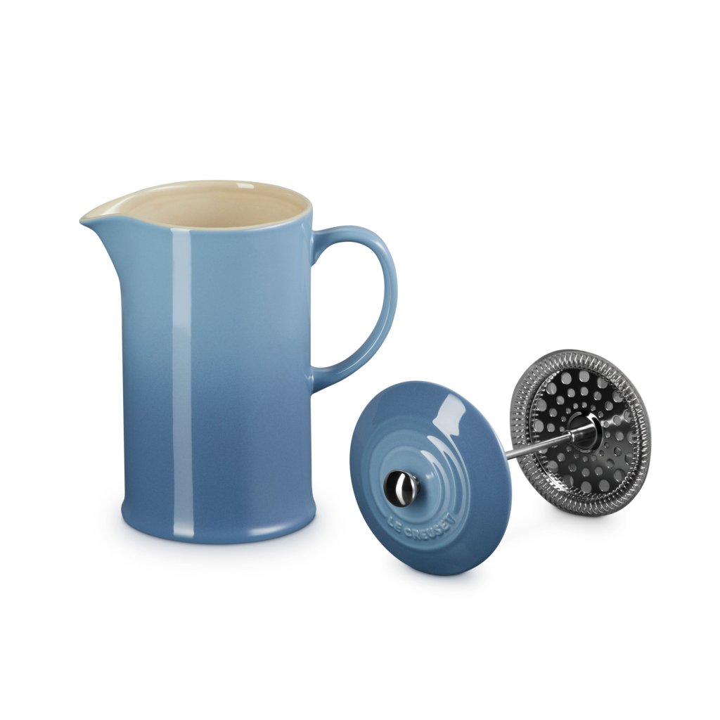 - Aparat de cafea cu presă franceză Le Creuset la umbra CHAMBRAY combină designul francez iconic, ritualul tradițional de preparare a cafelei și o calitate excepțională care va rezista mulți ani.