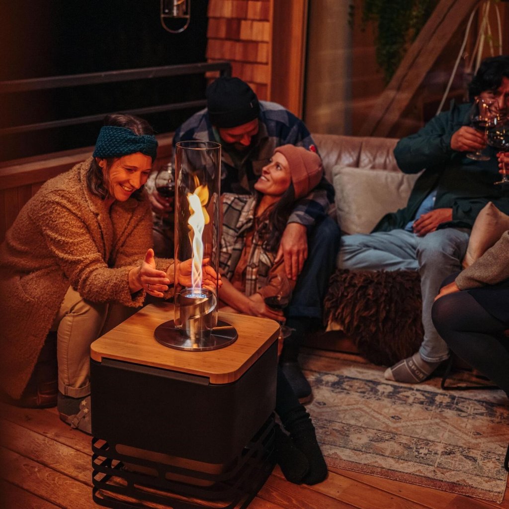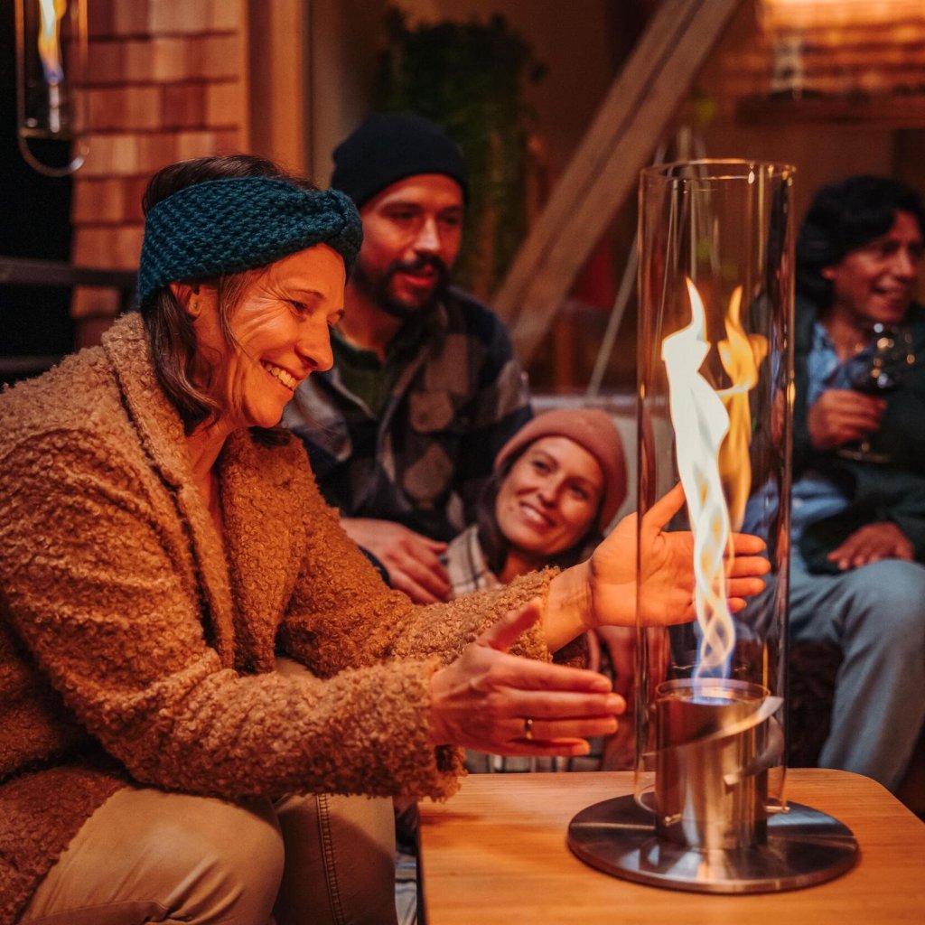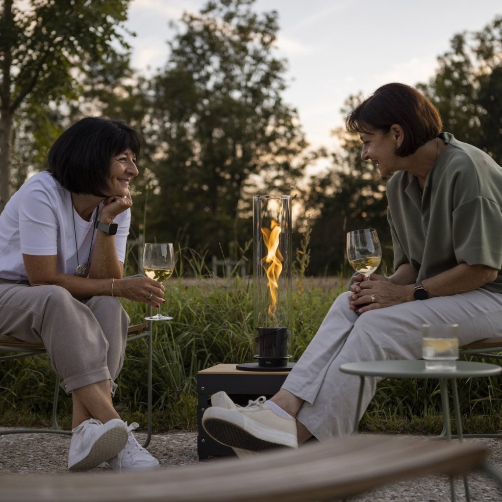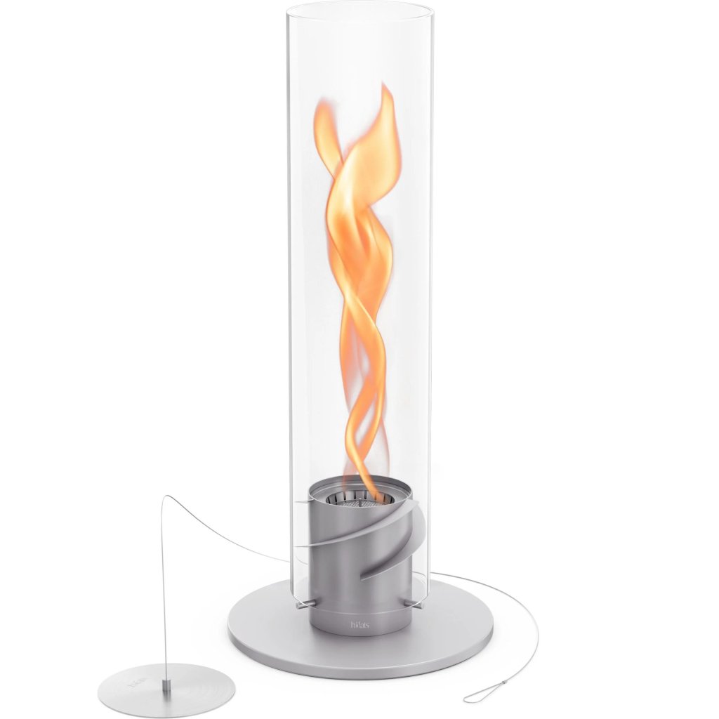 - cilindrul sticlă protejează flacăra de vânt și servește, de asemenea, ca o barieră de siguranță, făcând șemineul sigur de utilizat chiar și în prezența copiilor sau a animalelor de companie
