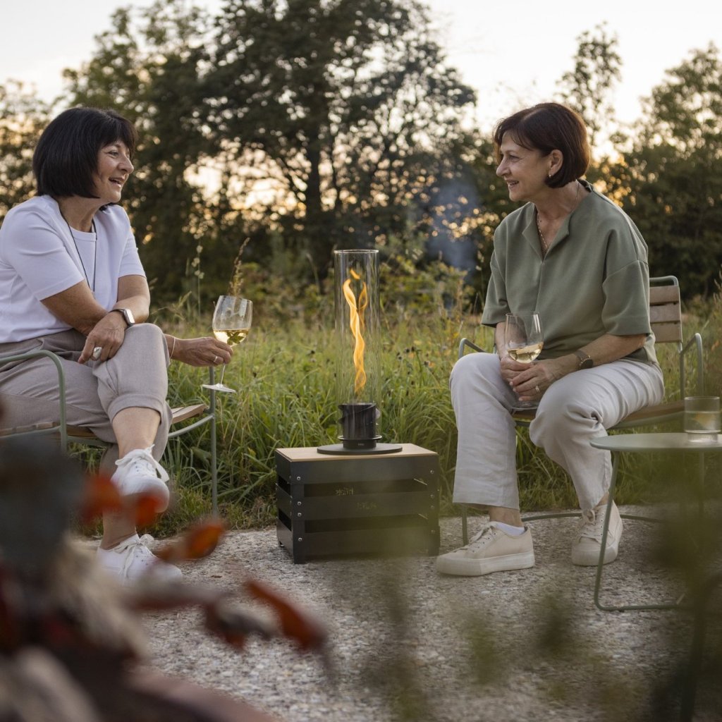- arderea durează 100 - 150 de minute când este umplută cu 200 ml de bioetanol Höfats, permițându-vă să vă bucurați de transparent și căldură plăcută pe tot parcursul serii, fără a fi nevoie să reumpleți sau să întrerupeți atmosfera magică