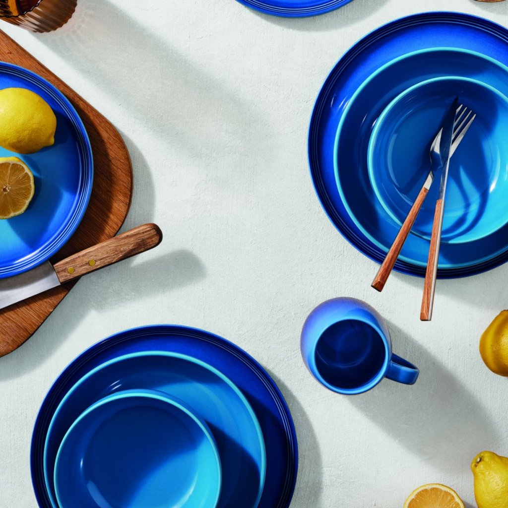 - Nuanța AZURE aduce o tonalitate proaspătă albastru cu o tranziție subtilă de culoare care arată modern, evidențiază frumos culorile preparatelor de mic dejun servite pe masă și se potrivește perfect cu alte articole de masă Le Creuset în aceeași nuanță.