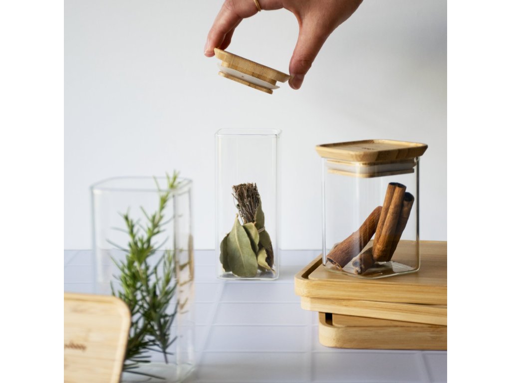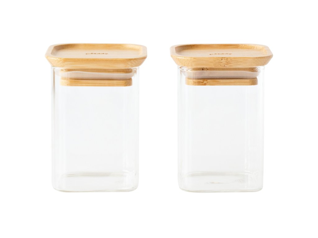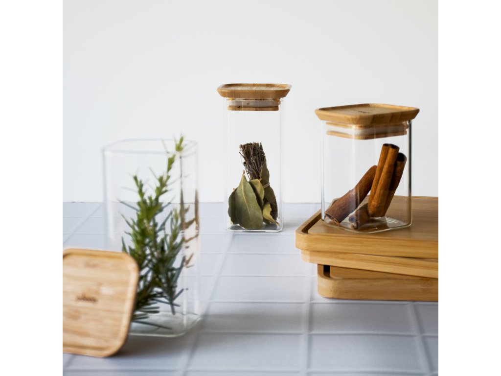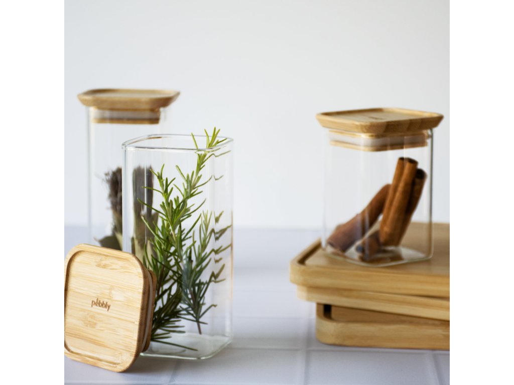 Borcan de depozitare pentru bucătărie PKV-047, set de 2 buc, sticlă/bambus, Pebbly