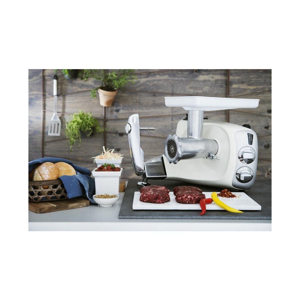 Echipamentul de bază include un bol de 7 litri din oțel inoxidabil în care puteți procesa 1,5 litri de aluat lichid sau 5 kg de aluat solid. Chiar și cu un volum atât de mare, robotul îl poate manipula fără probleme și devine astfel un ajutor ideal pentru prepararea diferitelor amestecuri și aluaturi. Robotul are, de asemenea, feedback-ul motorului, adică mașina însăși poate regla viteza în funcție de sarcină. Cu ajutorul unui malaxor și al unei spatule, acest bol este ideal pentru a amesteca o varietate de amestecuri și aluaturi mai ușoare. Dacă alegeți cârligul de frământare, puteți prepara cu ușurință un aluat și mai tare.
