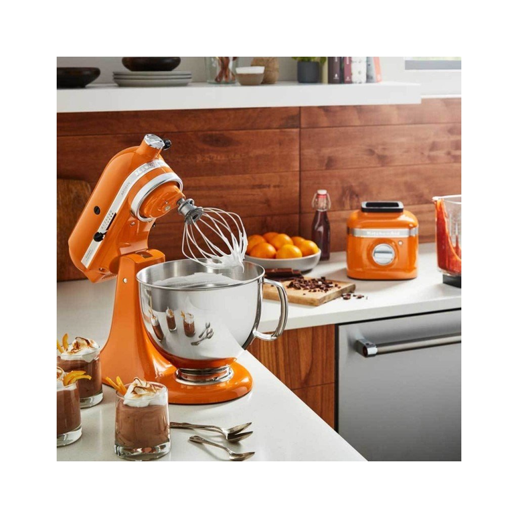 Robotul de bucătărie Artisan Elegance KitchenAid este un aparat vechi de un secol, care este produsul emblematic al mărcii americane KitchenAid. Luați ca atare faptul că robotul de bucătărie cu cap înclinat a evoluat în mod natural de la lansarea predecesorului său în 1908, dar chiar și astăzi continuă să impresioneze cu designul său retro elegant. Aspectul reîmprospătat sub forma unui logo argintiu pe bară adaugă o notă de eleganță robotului.