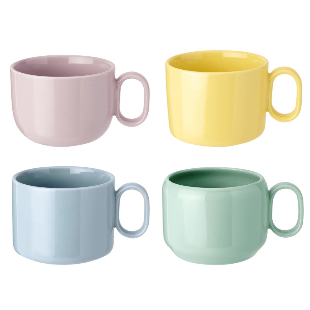 - cele patru căni din set diferă prin culoare și detalii subtile ale formei, creând un aspect jucăuș și casual