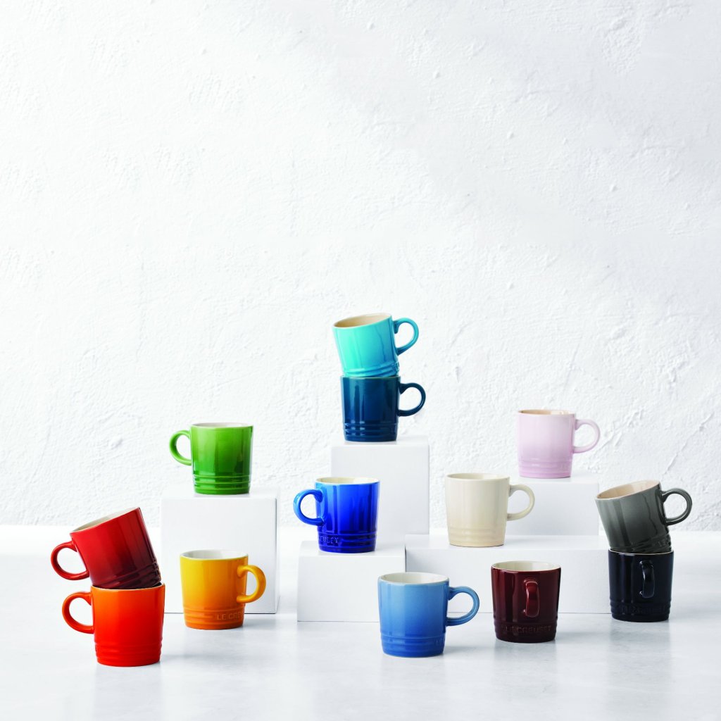 - Cele trei inele caracteristice de pe partea inferioară conectează acest vas cană cu designul iconic al vaselor de gătit fontă Le Creuset și îi conferă un farmec atemporal.