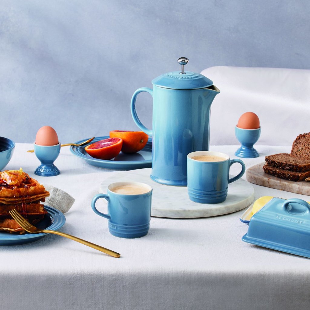 - Parfumul Cană pentru cappuccino Le Creuset în nuanța CHAMBRAY va impresiona prin culoarea sa delicată albastru , inspirată de cerul verii - arată calm, proaspăt și aduce o notă de eleganță franțuzească ritualului tău zilnic.
