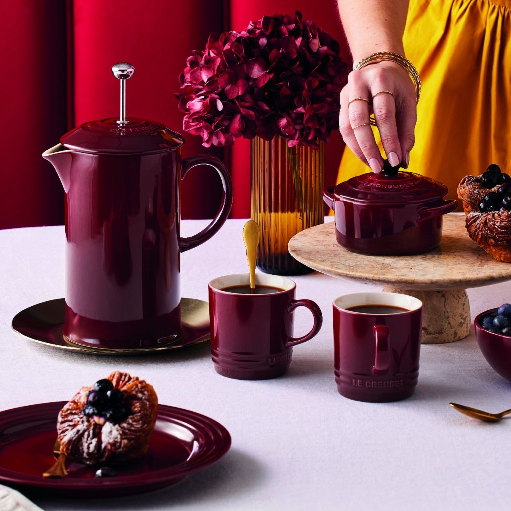 - Cană pentru cappuccino Le Creuset în nuanța GARNET încântă cu culoarea sa intensă și elegantă de vin roșu , care radiază căldură, lux și atemporalitate - un accesoriu ideal pentru momente de liniște și ocazii festive.
