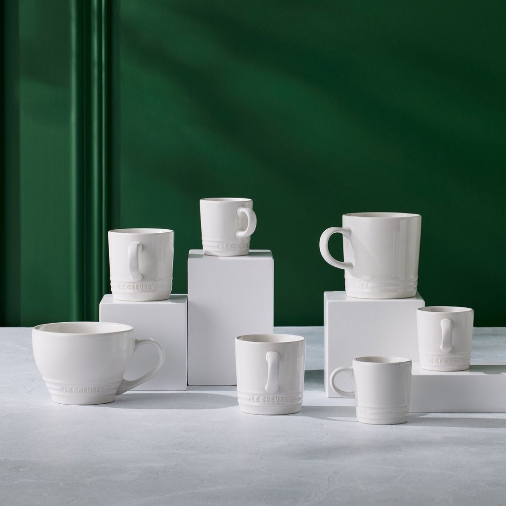 - Cană pe cappuccino Le Creuset în nuanța WHITE întruchipează eleganță și puritate atemporală - designul său minimalist și glazura radiantă alb aduc o senzație de calm, armonie și stil atemporal în fiecare zi.
