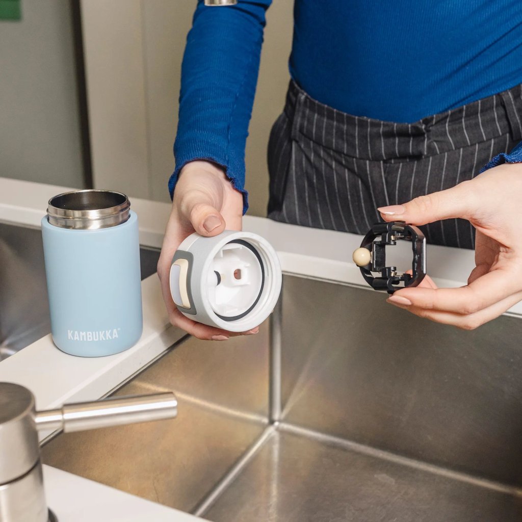 - Capacul etanș 100% are trei funcții - închis, mereu deschis, apăsați pentru a bea - și poate fi folosit cu orice sticlă Kambukka