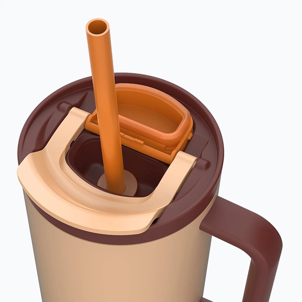 - În modul pai ascuns, paie pentru băut rămâne în interiorul capacului, creând un aspect elegant și compact pentru o portabilitate ușoară.