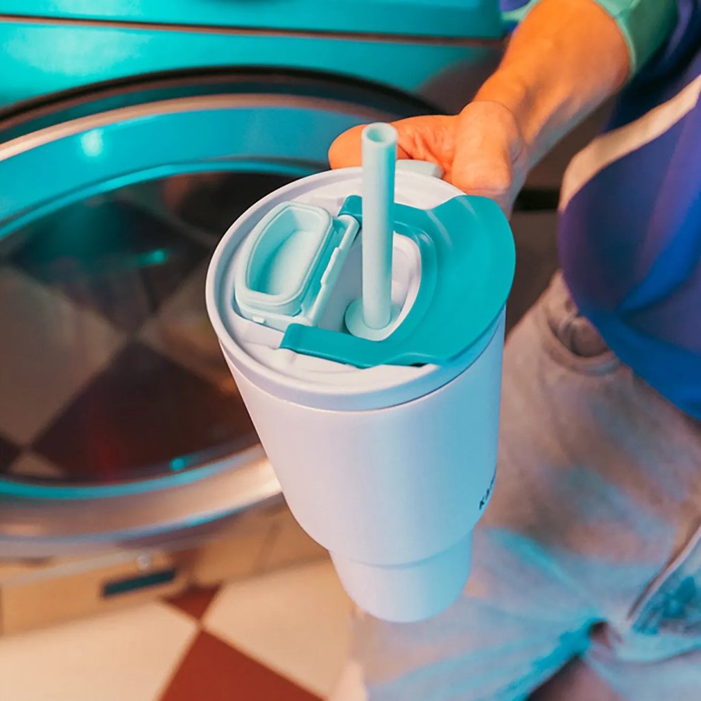 - cană termos RIO TUMBLER este primul pahar izolat cană cu un pai telescopic inovator care asigură o utilizare igienică maximă și compactă.