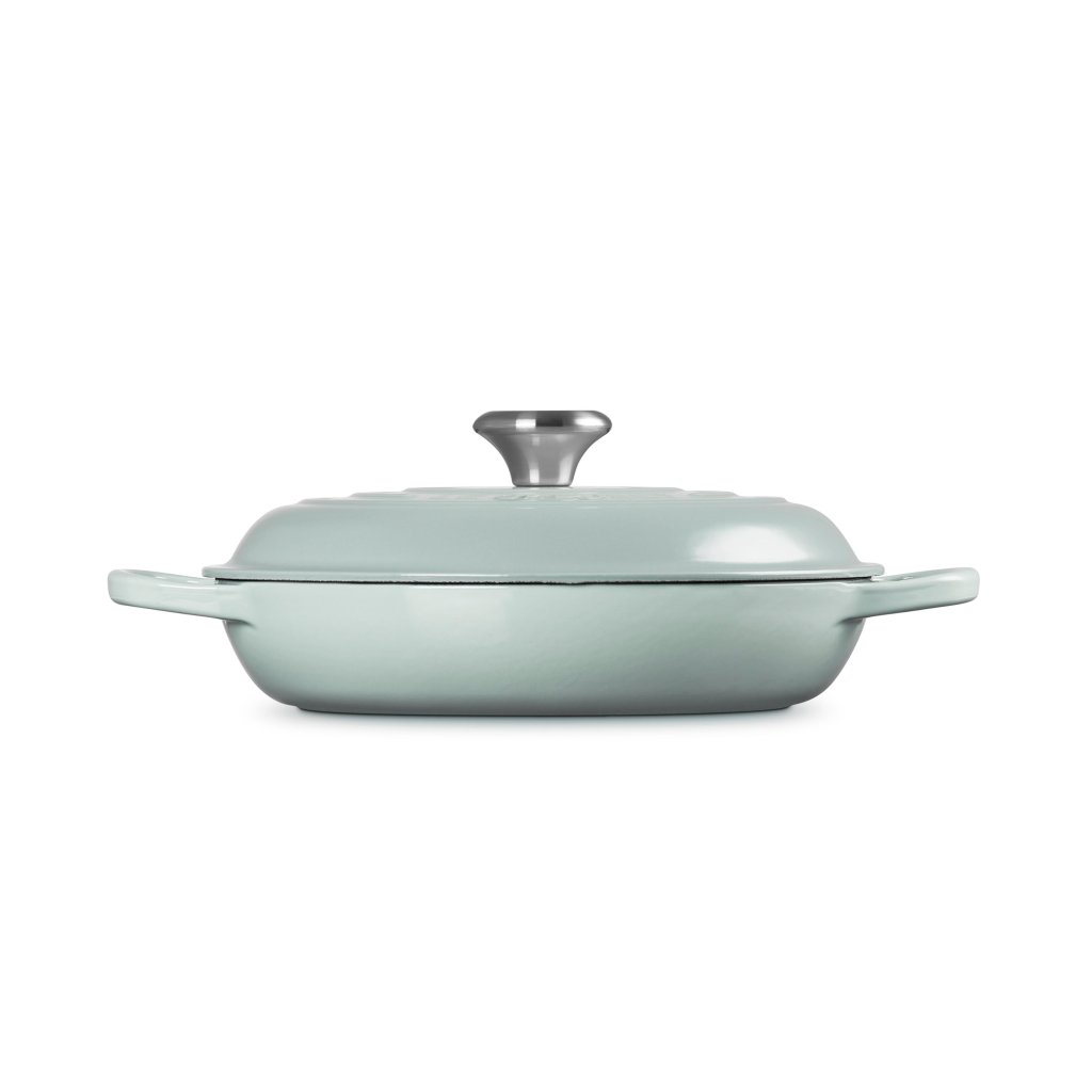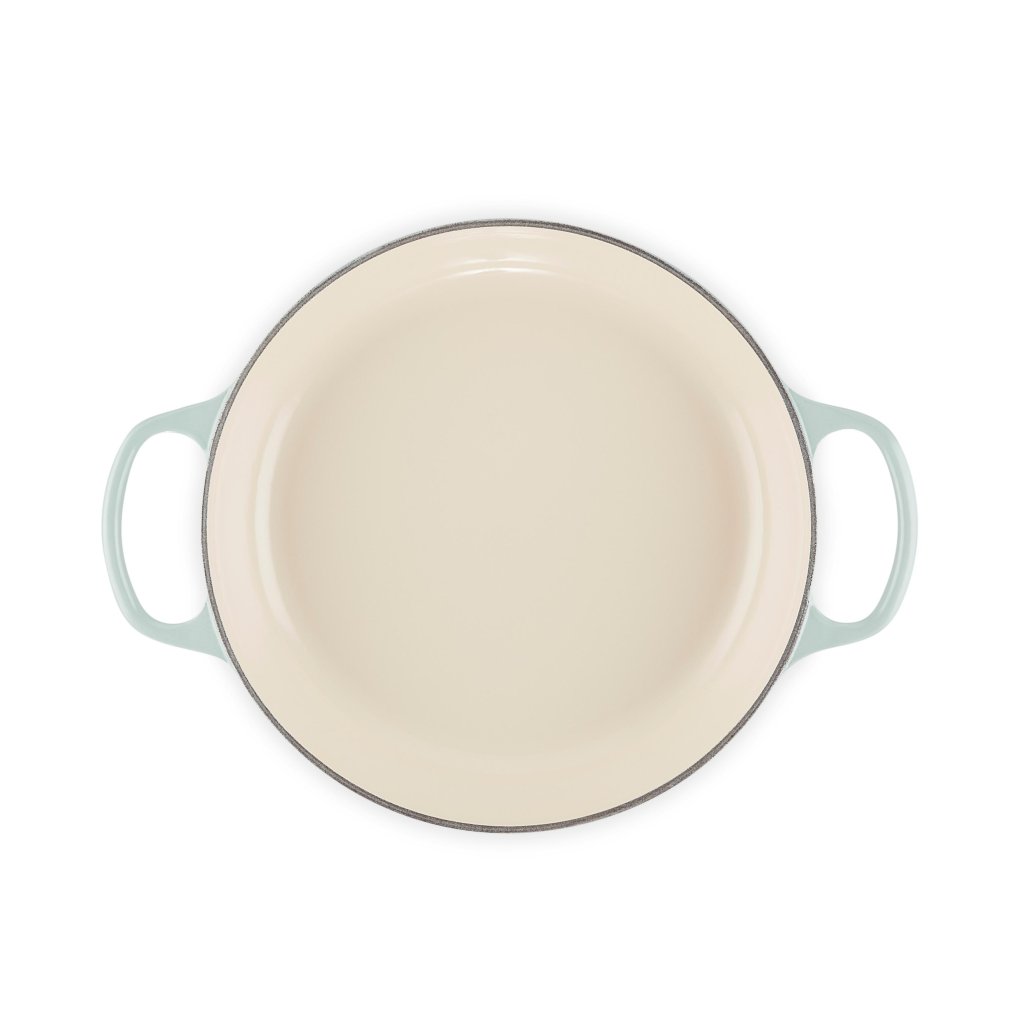 - Recipientul plat fontă capac pentru caserolă Le Creuset în culoarea SEA SALT este fabricat în Franța și este una dintre piesele legendare ale mărcii, ideal pentru gătit înăbușit, prăjit, copt și friptură pentru 2 - 4 persoane.