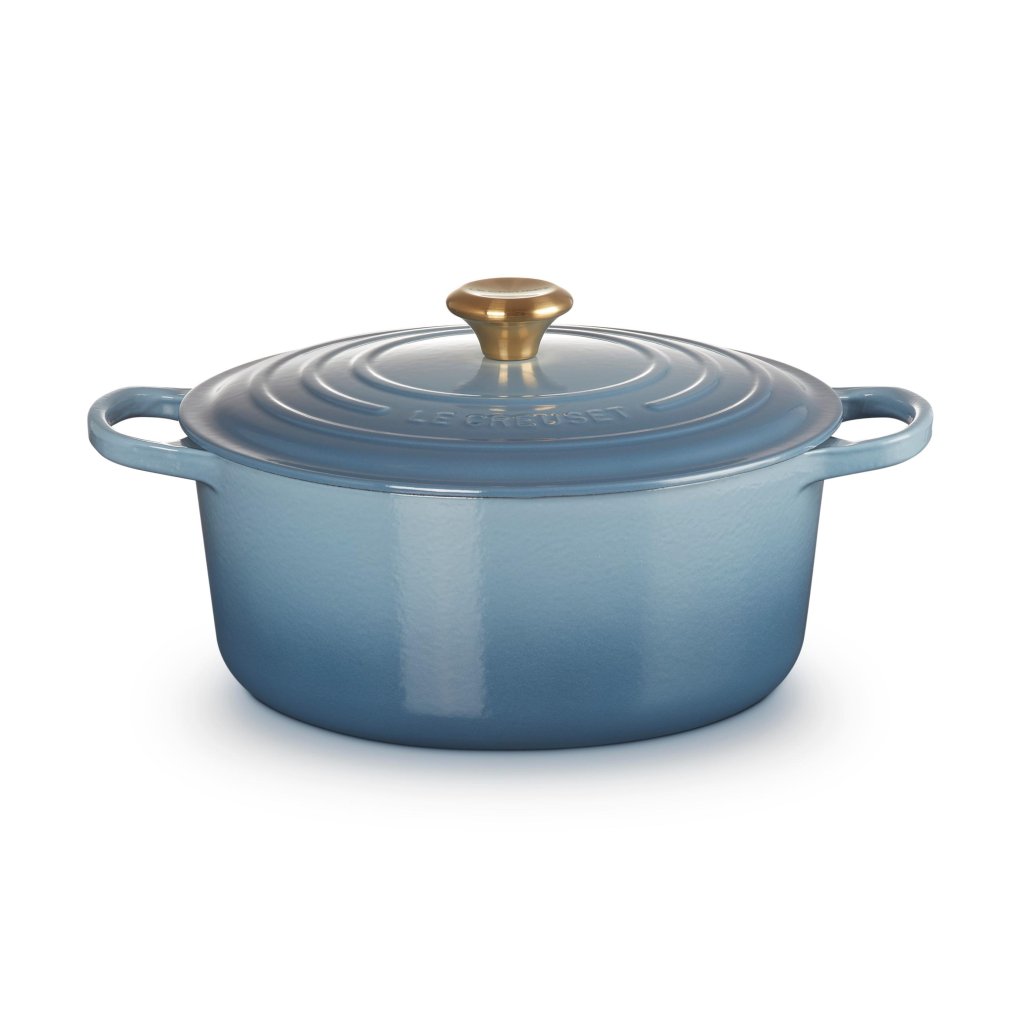 - Iconicul aparat fontă capac pentru caserolă Le Creuset în culoarea CHAMBRAY este o icoană printre ustensile de bucătărie, popular în întreaga lume și ideal pentru prepararea supelor, tocănițelor, fripturilor și specialităților de copt.
