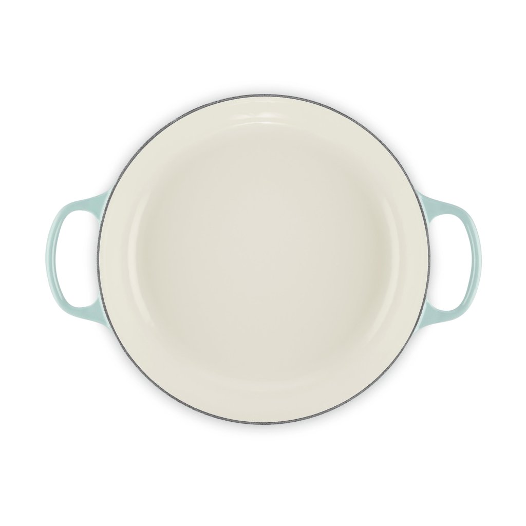 - Recipientul plat fontă capac pentru caserolă Le Creuset în culoarea SEA SALT este fabricat în Franța și este una dintre piesele legendare ale mărcii, ideal pentru gătit înăbușit, prăjit, copt și friptură pentru 4 - 6 persoane.