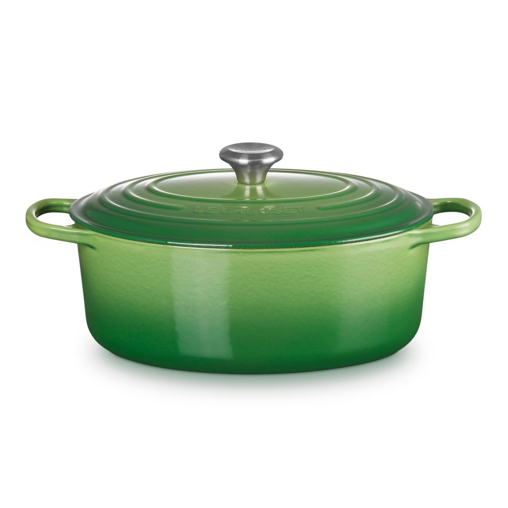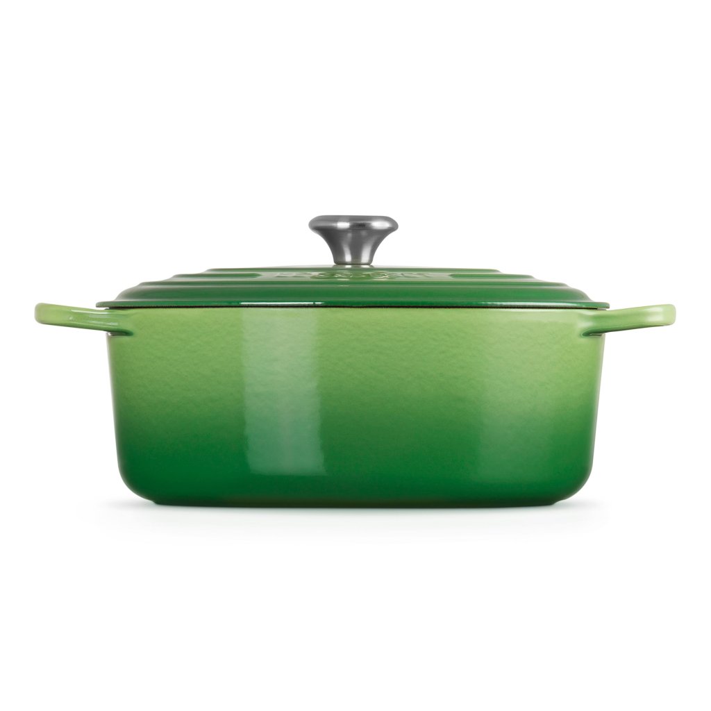 - Tava ovală fontă capac pentru caserolă Le Creuset în culoarea BAMBOO este un ajutor universal în bucătărie, suficient de spațioasă pentru a coace o pulpă întreagă de miel și, în același timp, suficient de îngustă pentru a lăsa loc în cuptor pentru garnituri.