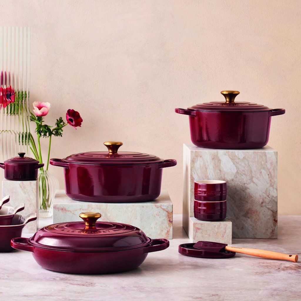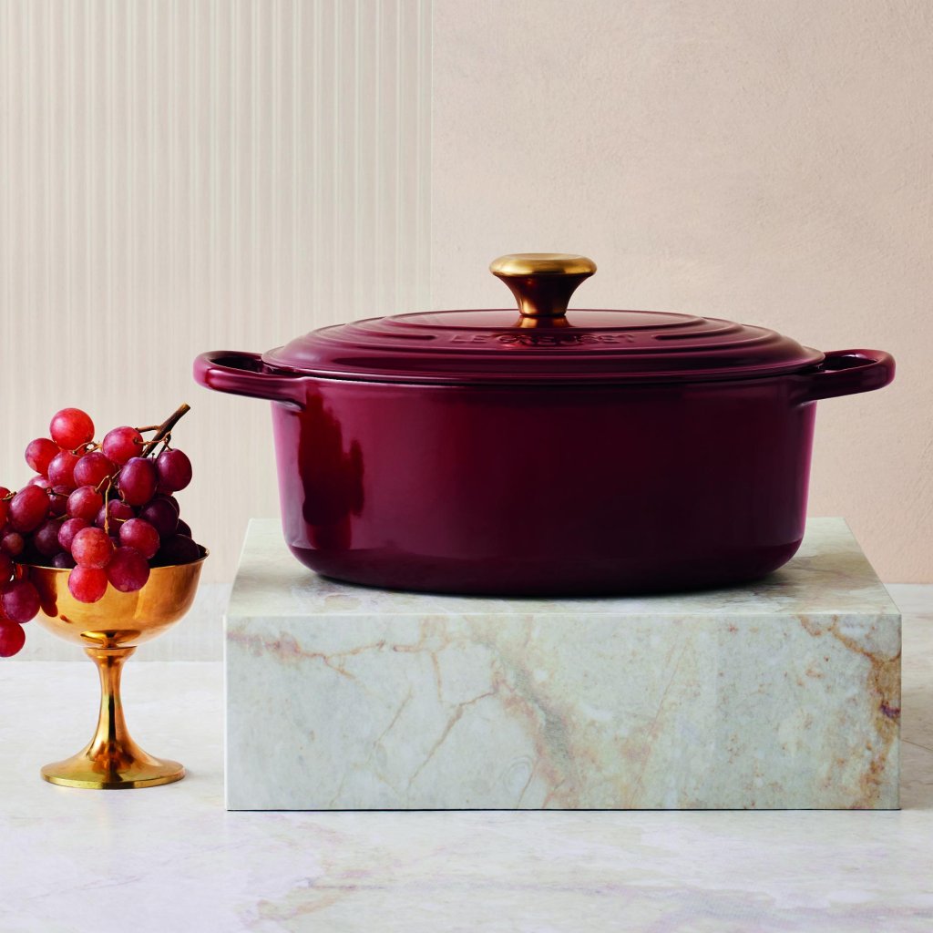 - Tava ovală fontă capac pentru caserolă Le Creuset în culoarea GARNET este un ajutor universal în bucătărie, suficient de spațioasă pentru a coace o pulpă întreagă de miel și, în același timp, suficient de îngustă pentru a lăsa loc în cuptor pentru garnituri.