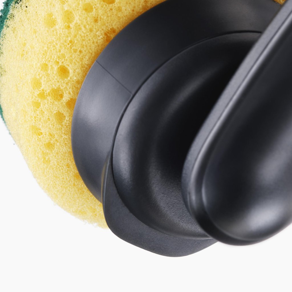 - Construcția cu burete este completată de un strat abraziv de curățare, care ajută la îndepărtarea resturilor de mâncare și a murdăriei obișnuite.
