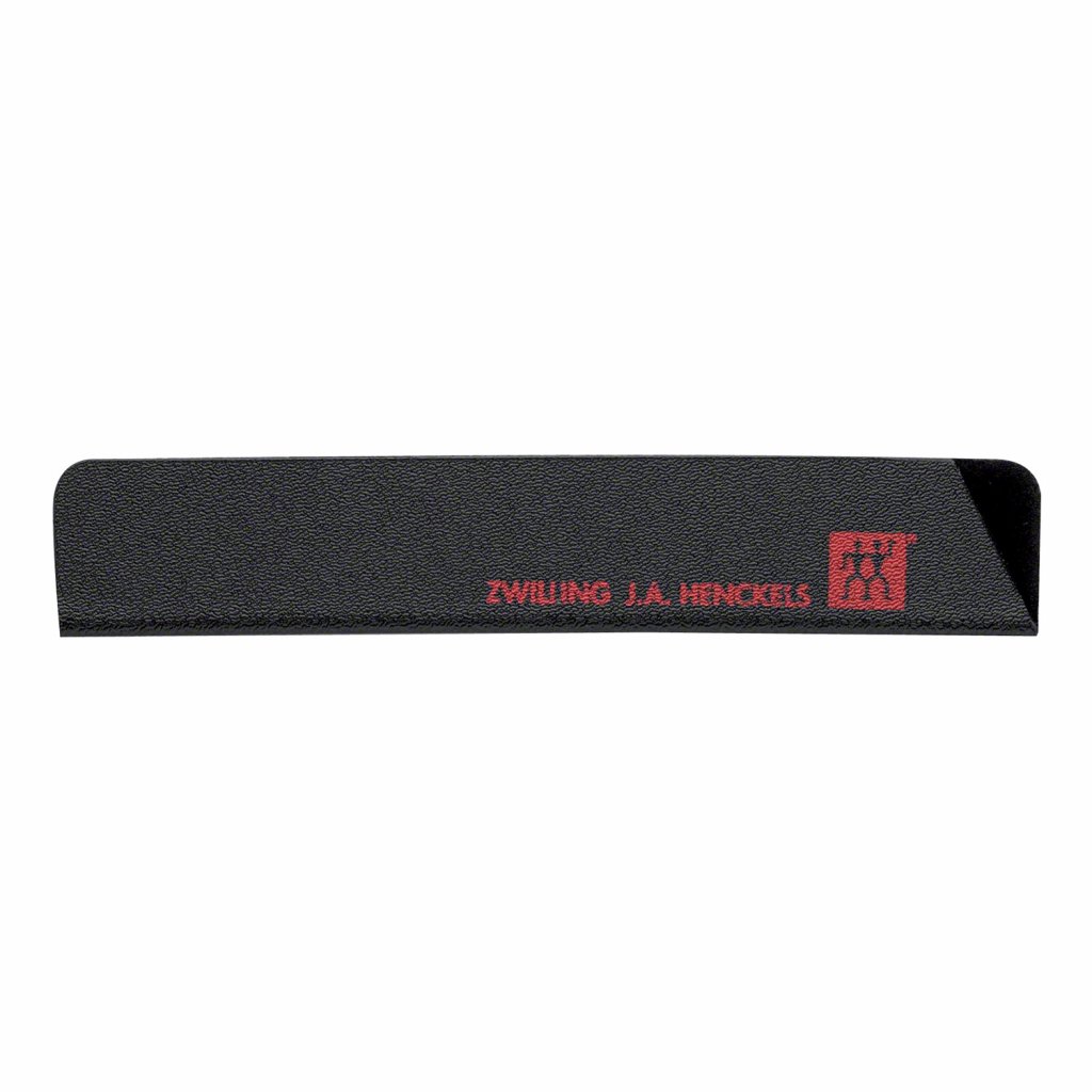 Teaca protectoare pentru cuțite ZWILLING vă permite să vă depozitați în siguranță cuțitele de bucătărie. Partea sa exterioară este realizată din plastic ABS durabil de culoare neagră, iar interiorul este fabricat dintr-un tip special de vâscoză. Husa protejează lama cuțitului astfel încât aceasta să nu se deterioreze în timpul manipulării sau depozitării, iar cuțitul nu va zgâria sertarele sau alte obiecte. Potrivit pentru cuțite cu lame de la 9 cm până la o lungime maximă de 13 cm.