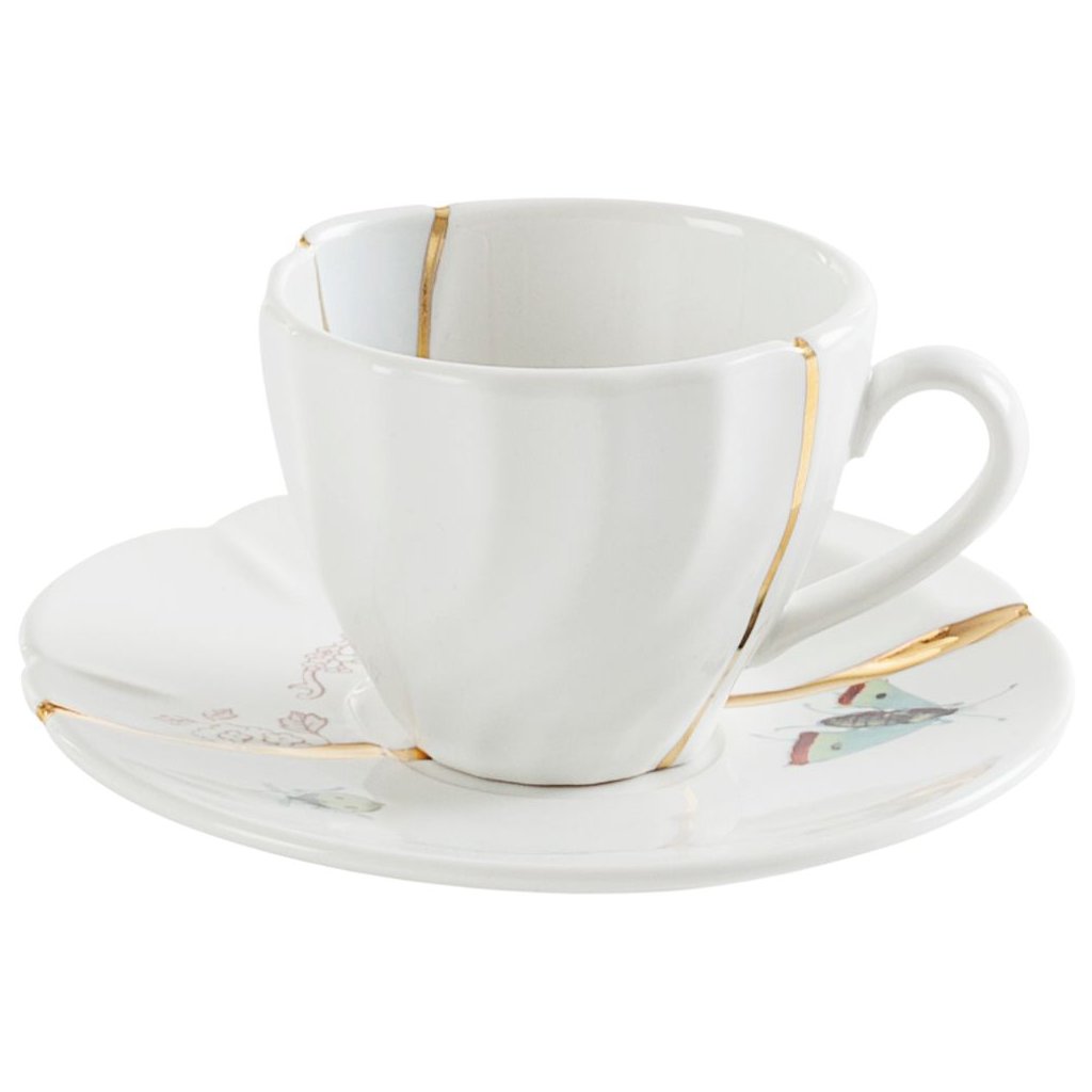 Ceașcă de cafea cu farfurie KINTSUGI 2 alb, Seletti