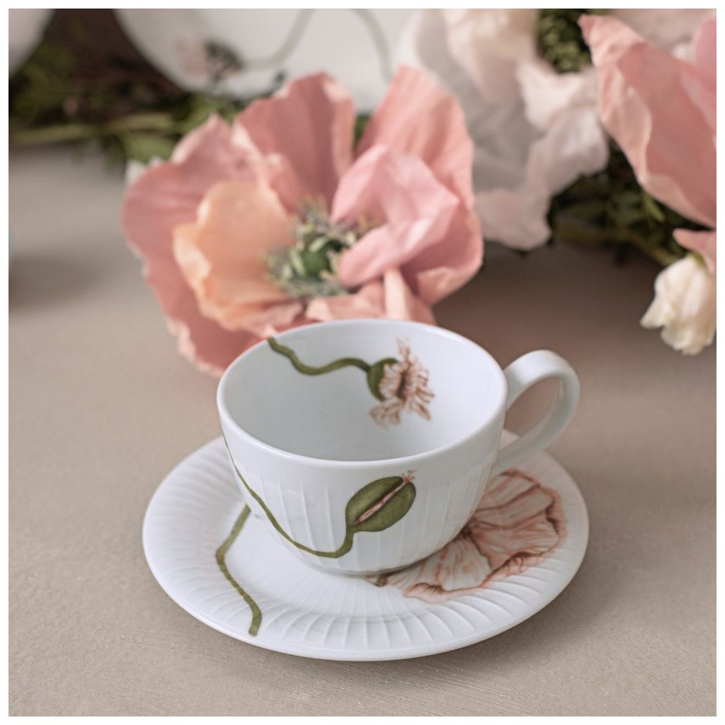 Ceașcă de ceai cu farfurie HAMMERSHOI POPPY, 380 ml, alb, Kähler