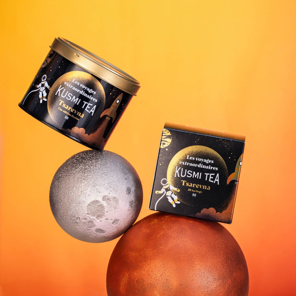 - Eleganta cutie de colecție, cu detalii auriu și motive ale descoperirilor spațiale, face din acest ceai un cadou atractiv.
