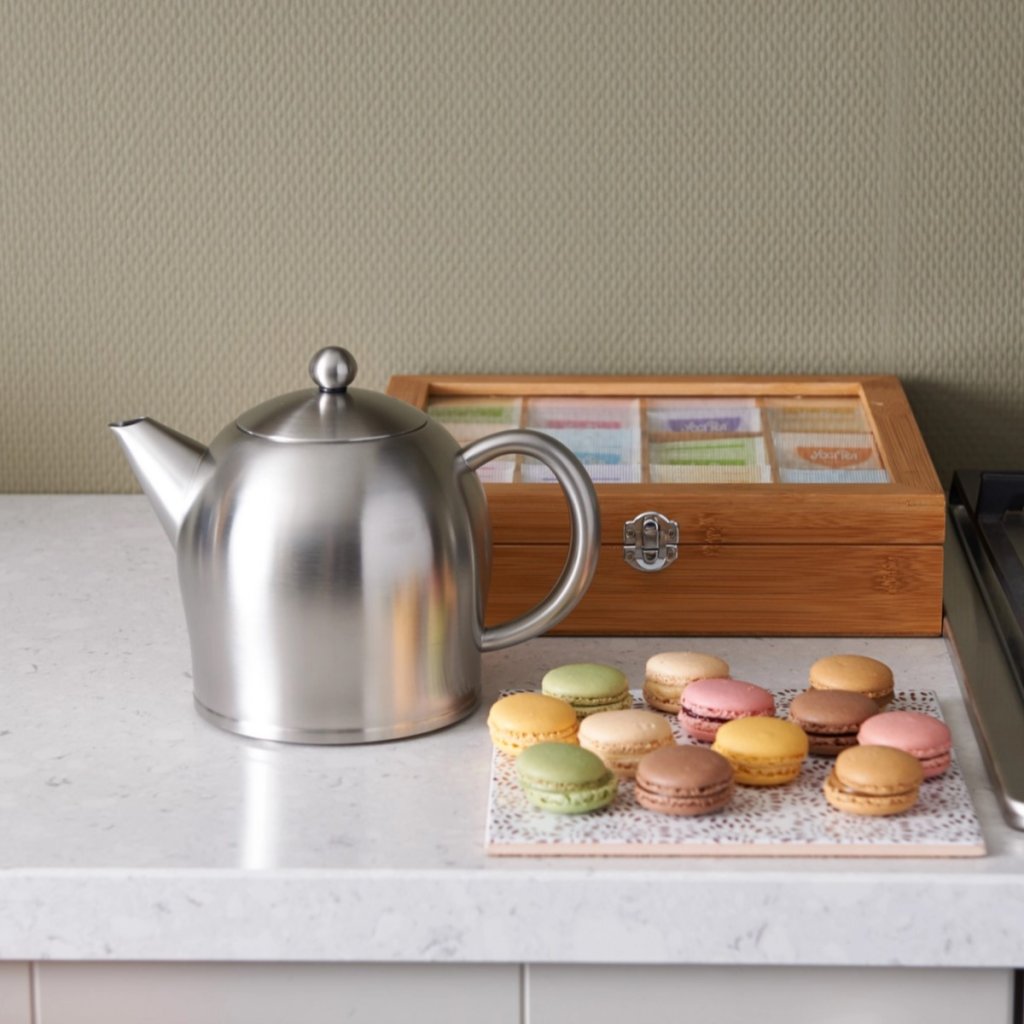 - Ceainicul MINUET SANTHEE cu finisaj mat oțel inoxidabil îmbină eleganța modernă cu utilitatea practică