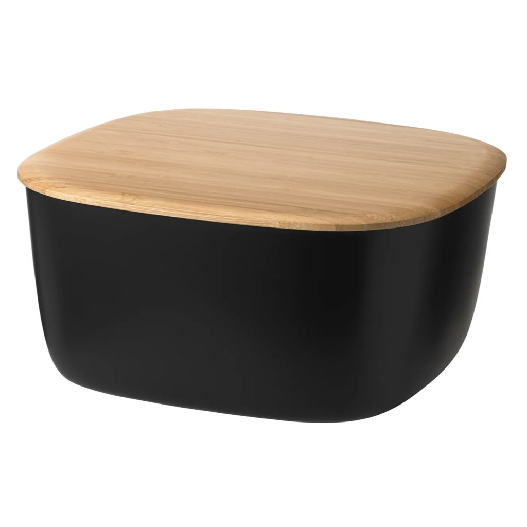 Coșul de pâine BOX-IT 23 cm, negru, plastic / bambus, RIG-TIG