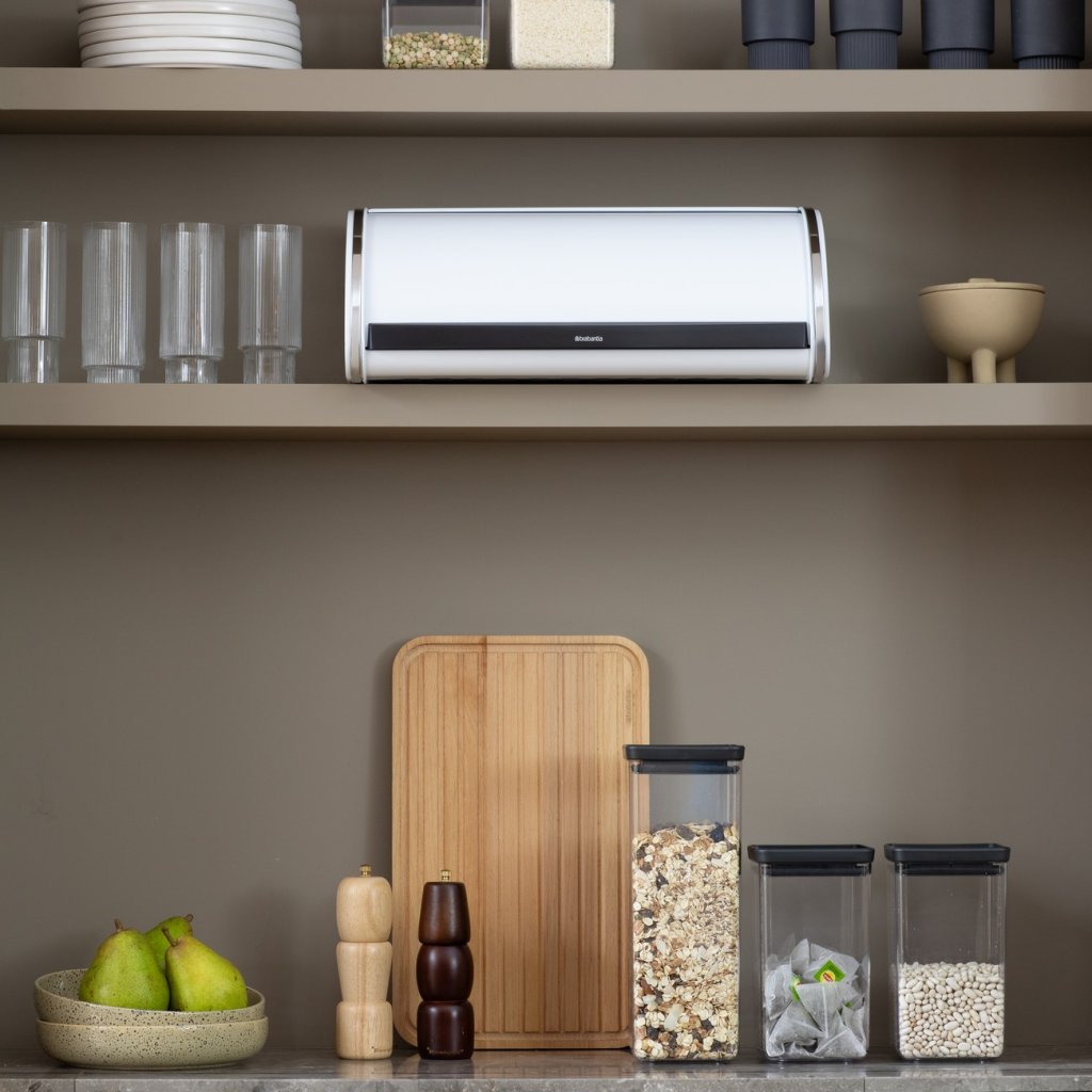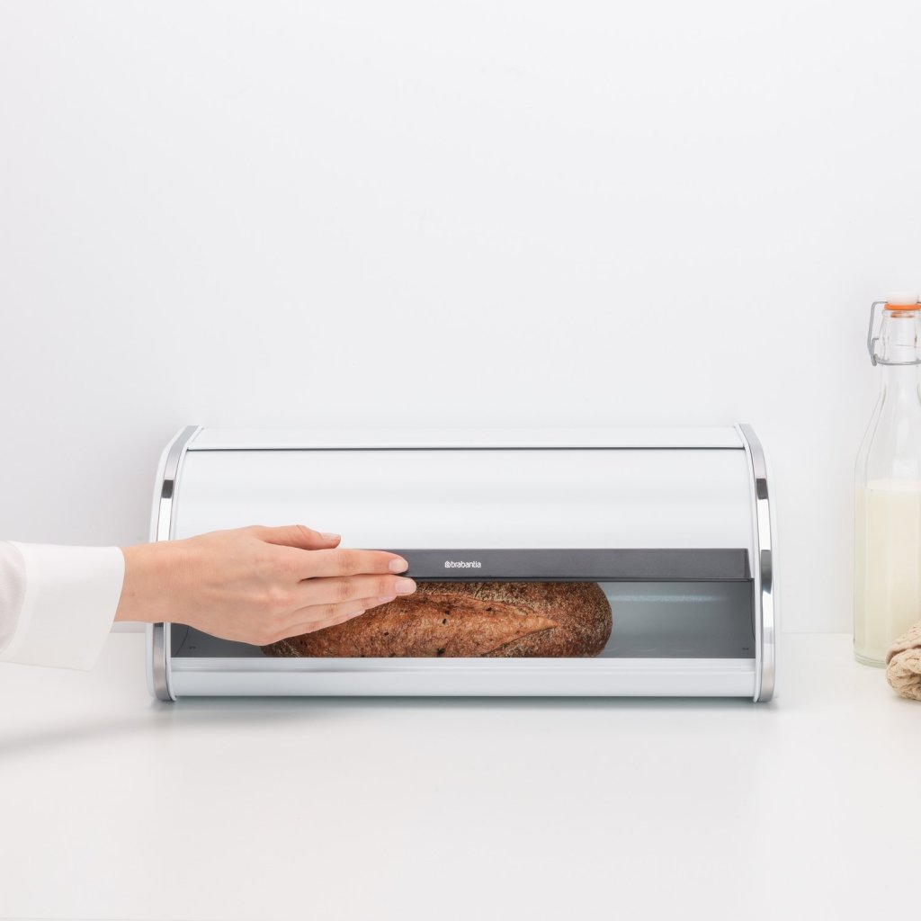 - practic coșul de pâine Brabantia ROLL Blatul elegant alb este soluția ideală pentru depozitarea a două pâini sau a altor produse de patiserie