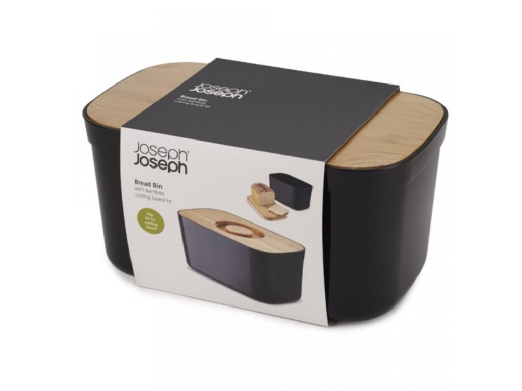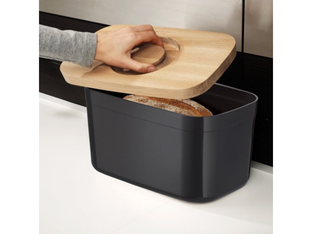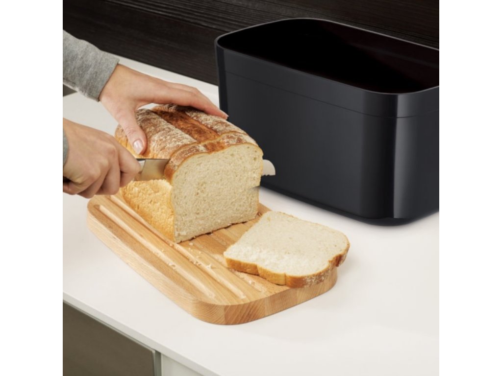 Coș pentru pâine cu tocător BAMBOO 81103 35 x 22 cm, negru, plastic, Joseph Joseph