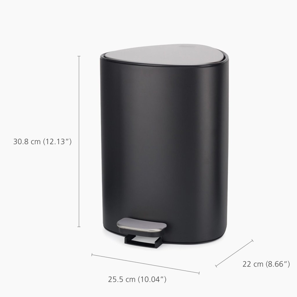 - Coș cu pedală EASYSTORE de 5 litri, de un elegant negru, este conceput pentru a se potrivi perfect într-un colț al camerei și pentru a economisi spațiu valoros.