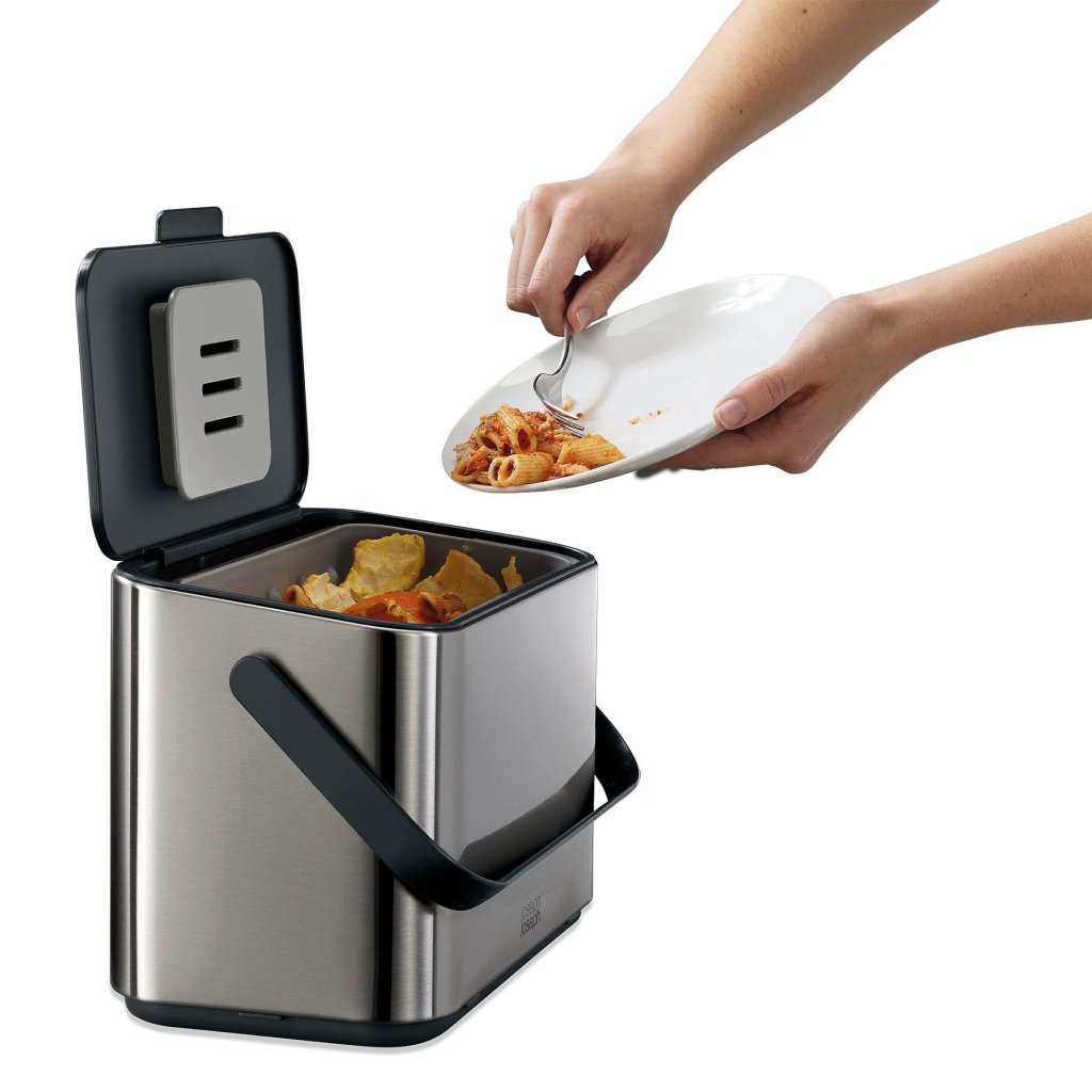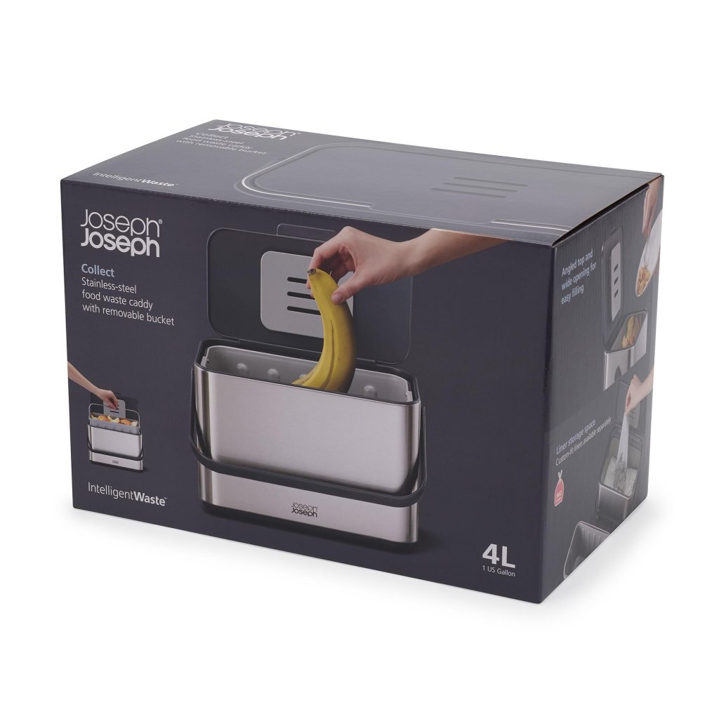 Coș de gunoi alimentar COLLECT 30145 4 l, argintiu, oțel inoxidabil, Joseph Joseph