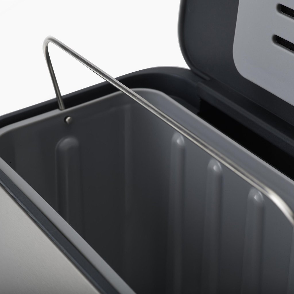 - Recipientul interior detașabil permite golirea ușoară și igienică a conținutului într-un compostator de exterior sau într-un coș de gunoi mai mare.