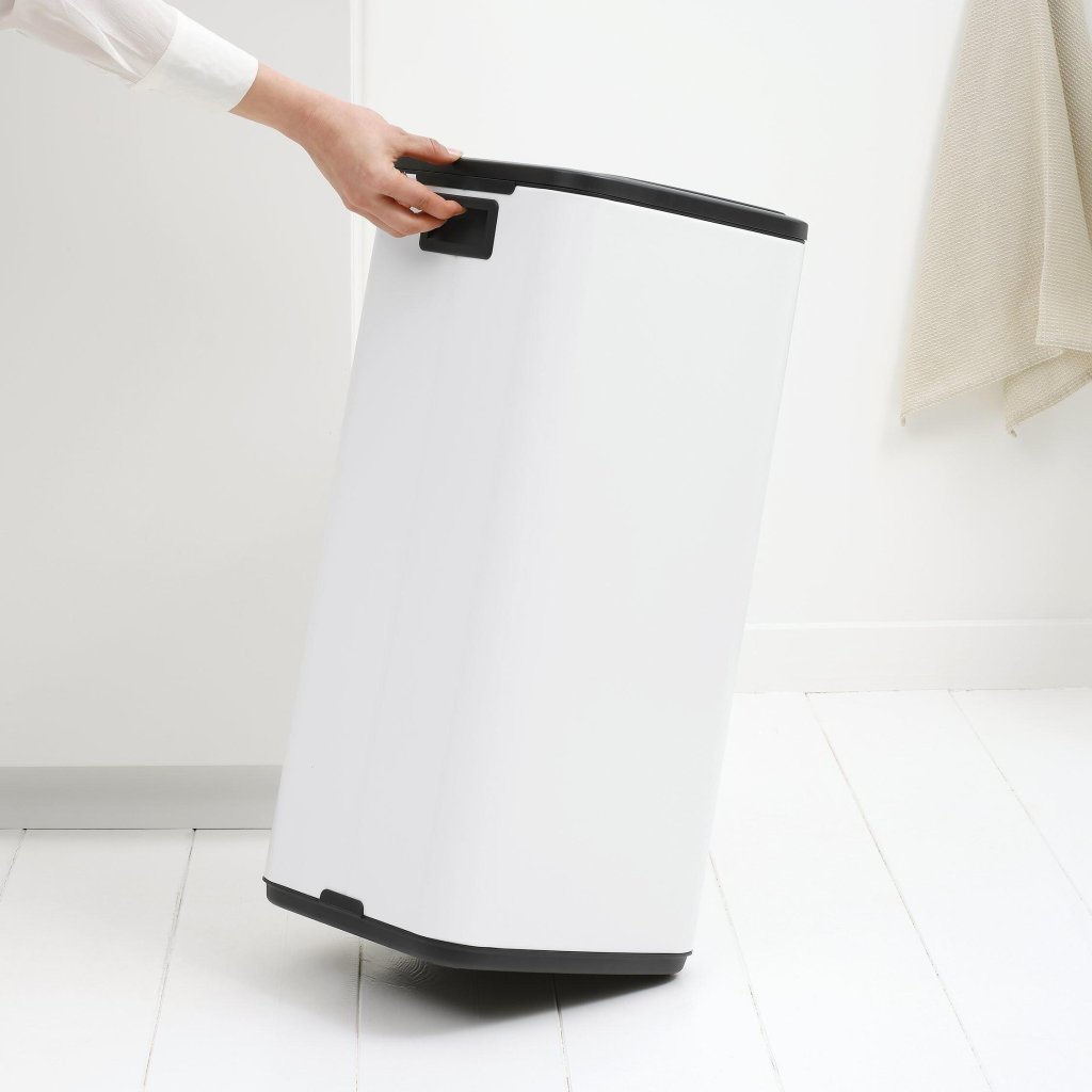 - Mânerul integrat din spate permite mutarea coșului din loc în loc fără efort și fără contact cu interiorul recipientului.