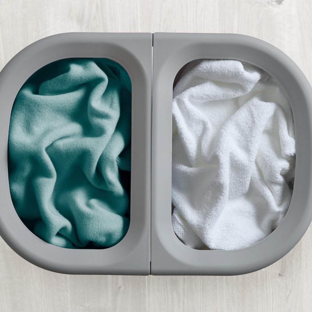 - Coș de rufe Joseph Joseph DUO cu un volum total de 80 de litri este conceput pentru sortarea convenabilă și clară a rufelor în timpul depozitării.