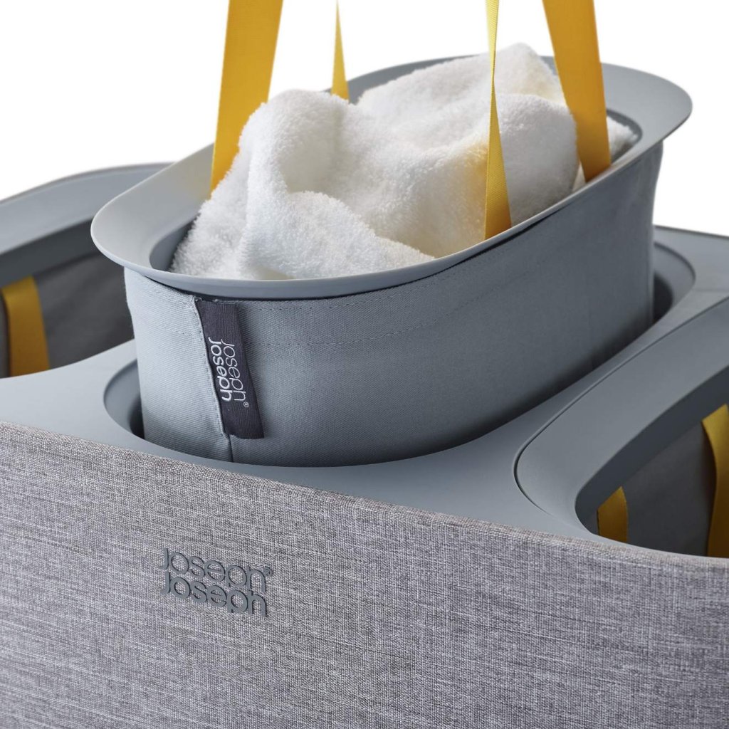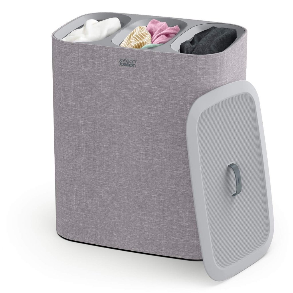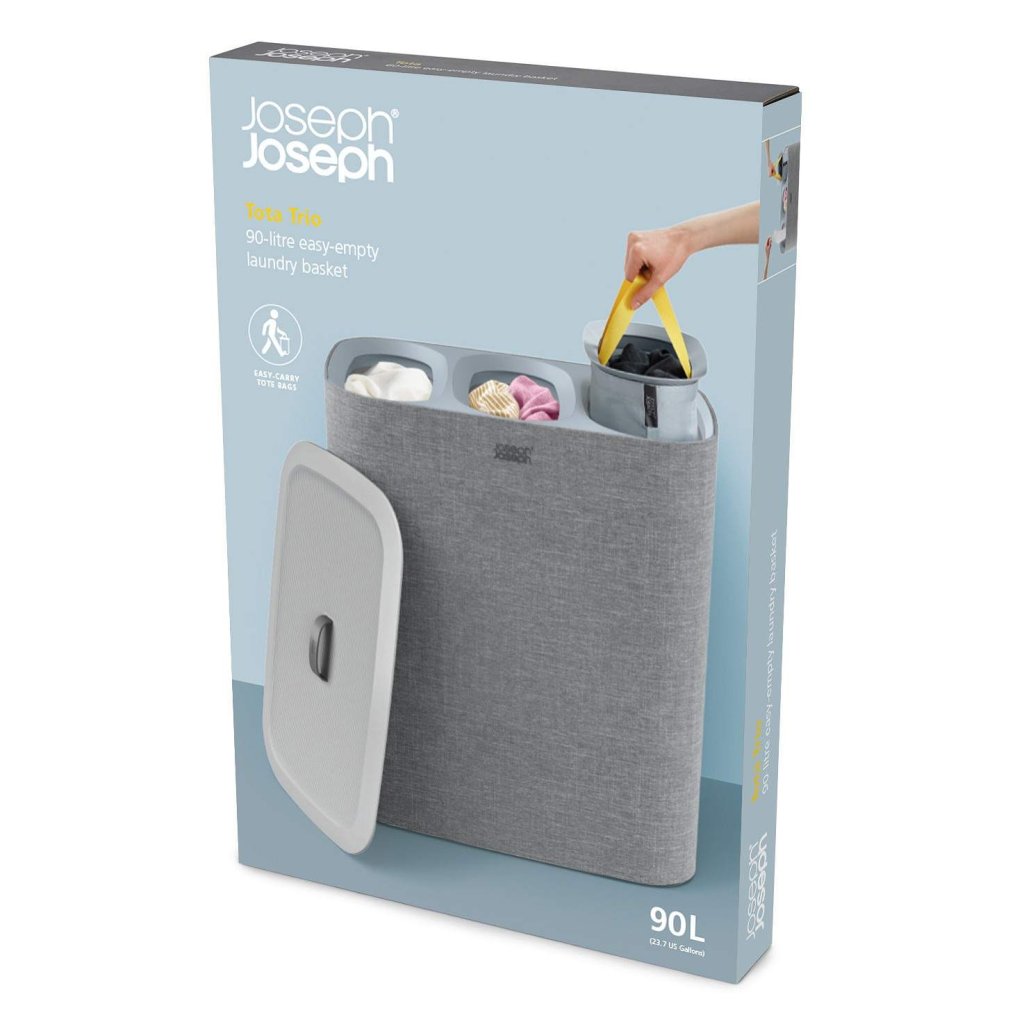 - Coș de rufe Joseph Joseph TOTA TRIO în culoarea gri oferă o soluție practică și clară pentru sortarea rufelor în dormitor, baie sau camera tehnică.