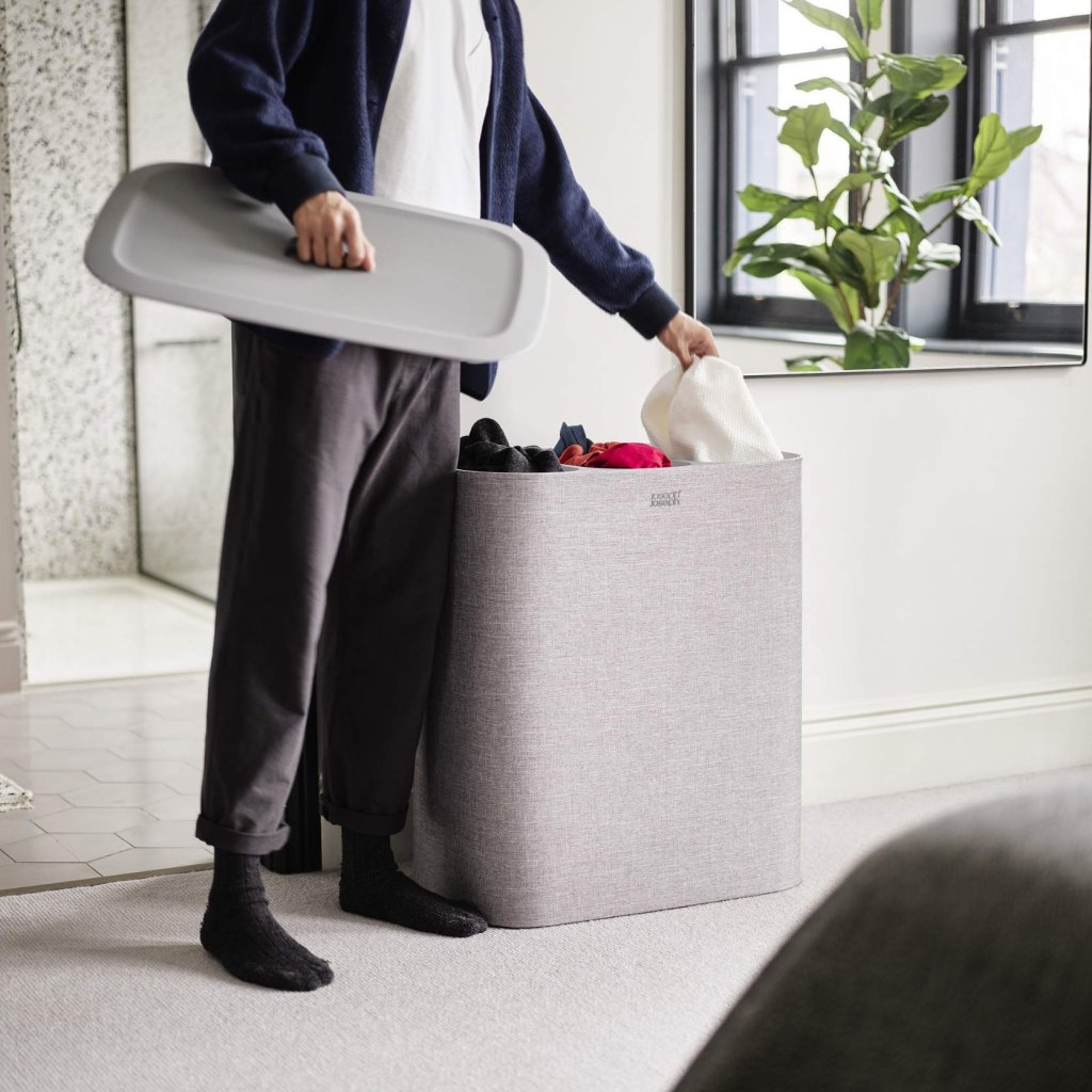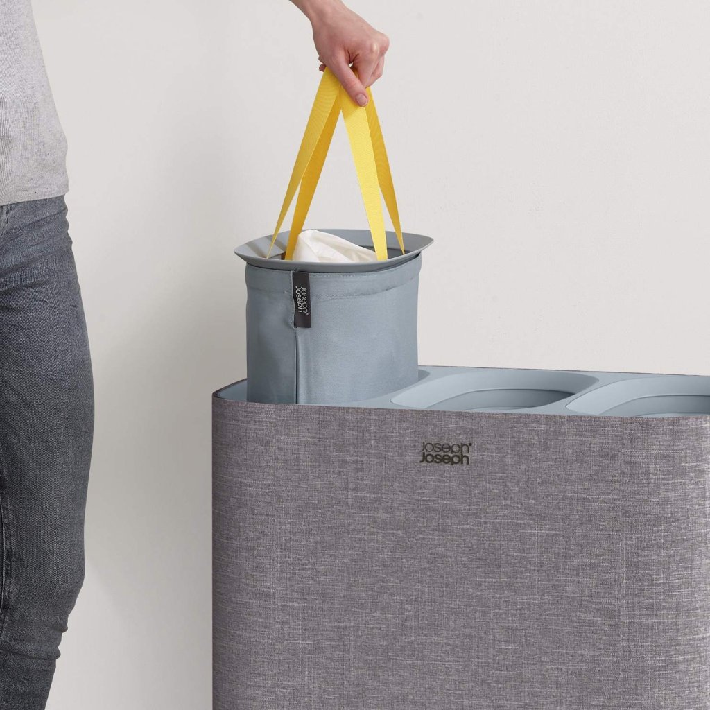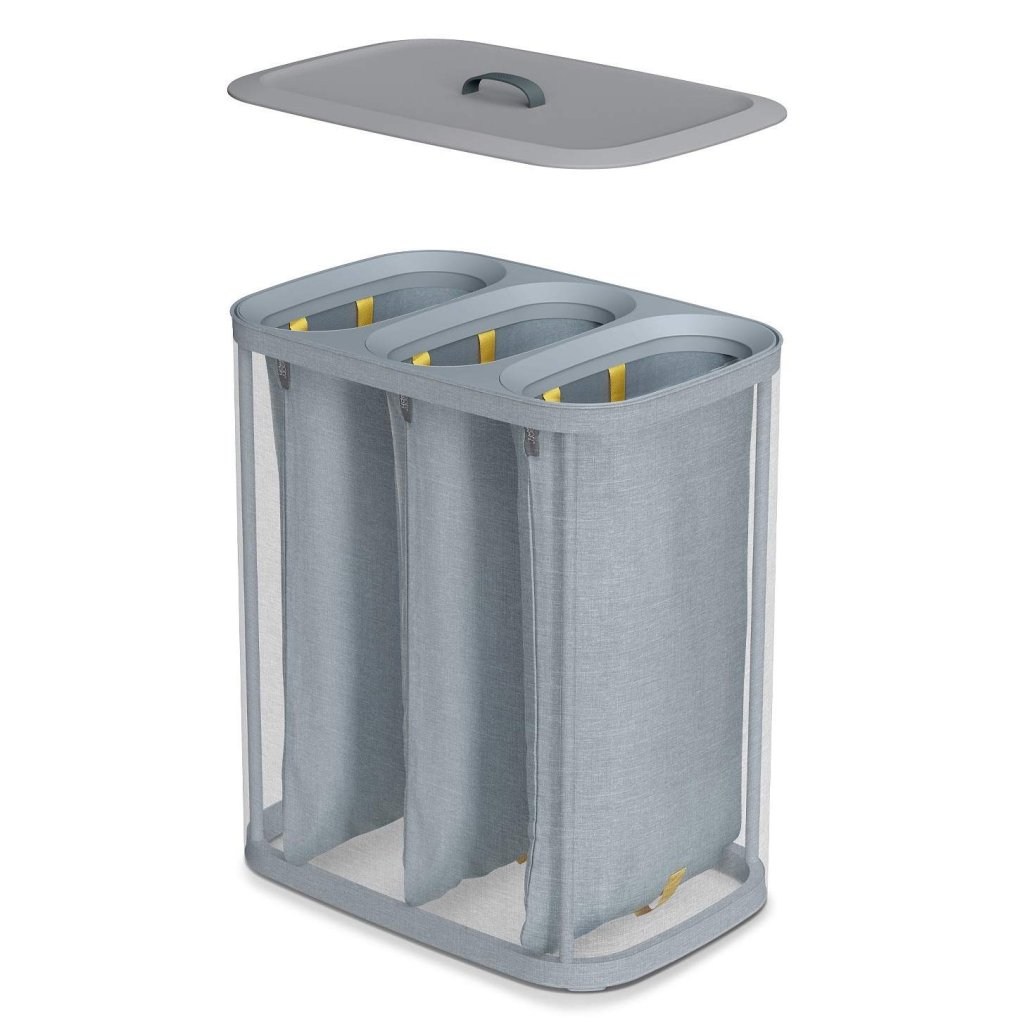 - Coș de rufe Joseph Joseph TOTA TRIO în culoarea gri oferă o soluție practică și clară pentru sortarea rufelor în dormitor, baie sau camera tehnică.