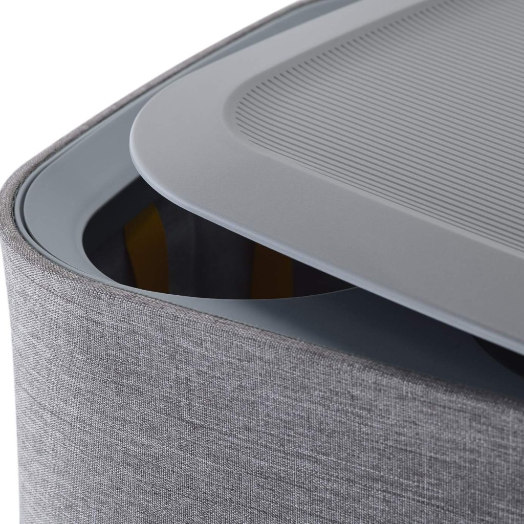 - Capacul acoperă rufele depozitate și ajută la menținerea ordinii și organizării vizuale a interiorului.