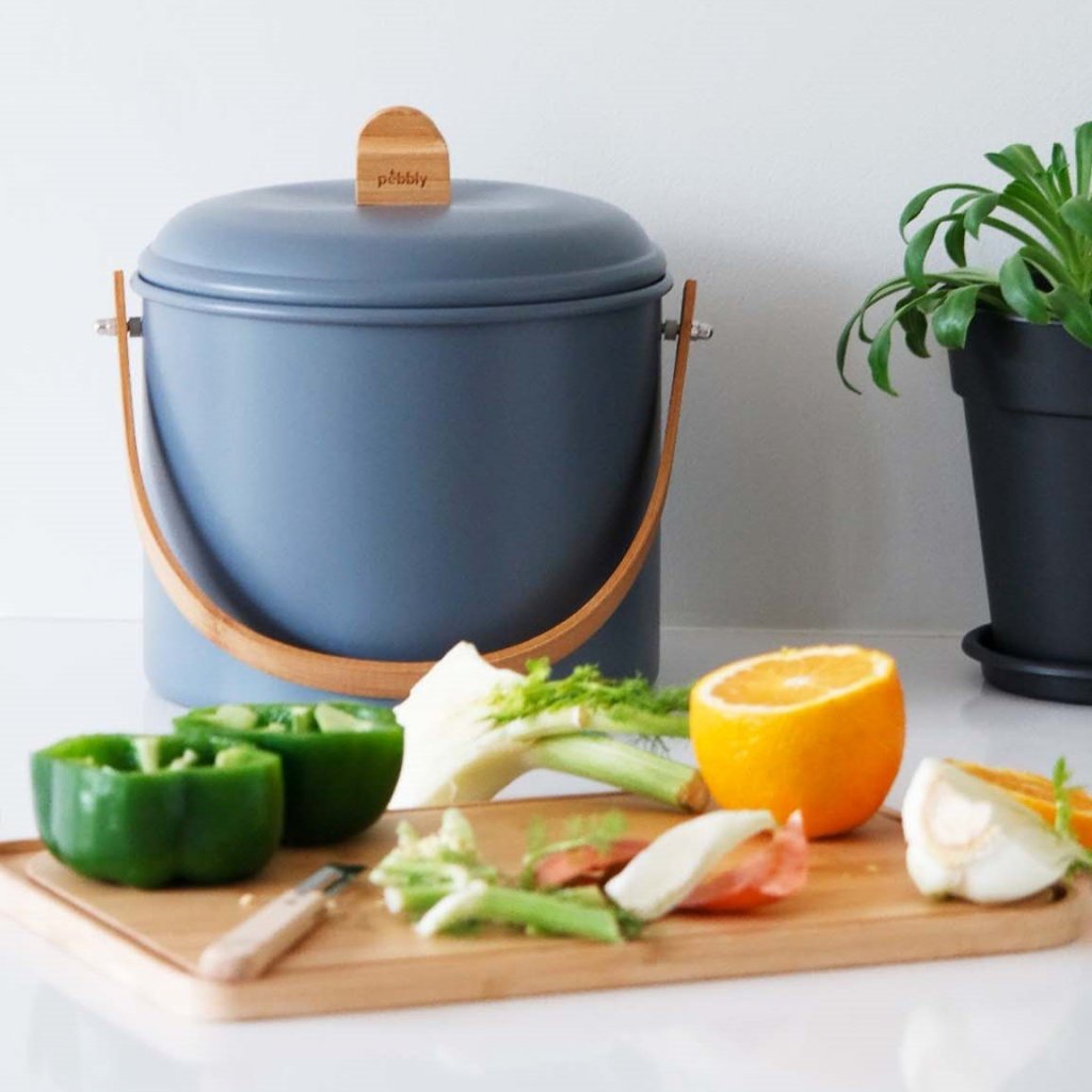 Compostor NBA196 7 l, albastru, oțel / bambus, Pebby