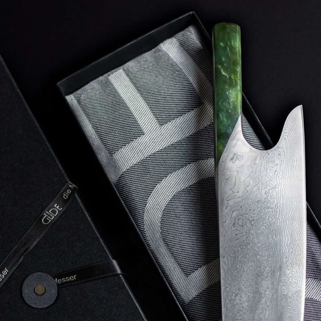 Cuțit pentru bucătărie THE KNIFE JADE DAMASCUS 26 cm, verde, Güde
