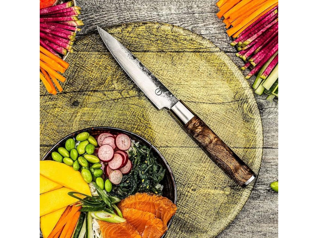 - cuțit universal Forged VG10 cu o lamă lungă de 12,5 cm este un ajutor excelent pentru munca zilnică în bucătărie atunci când este nevoie de precizie și viteză