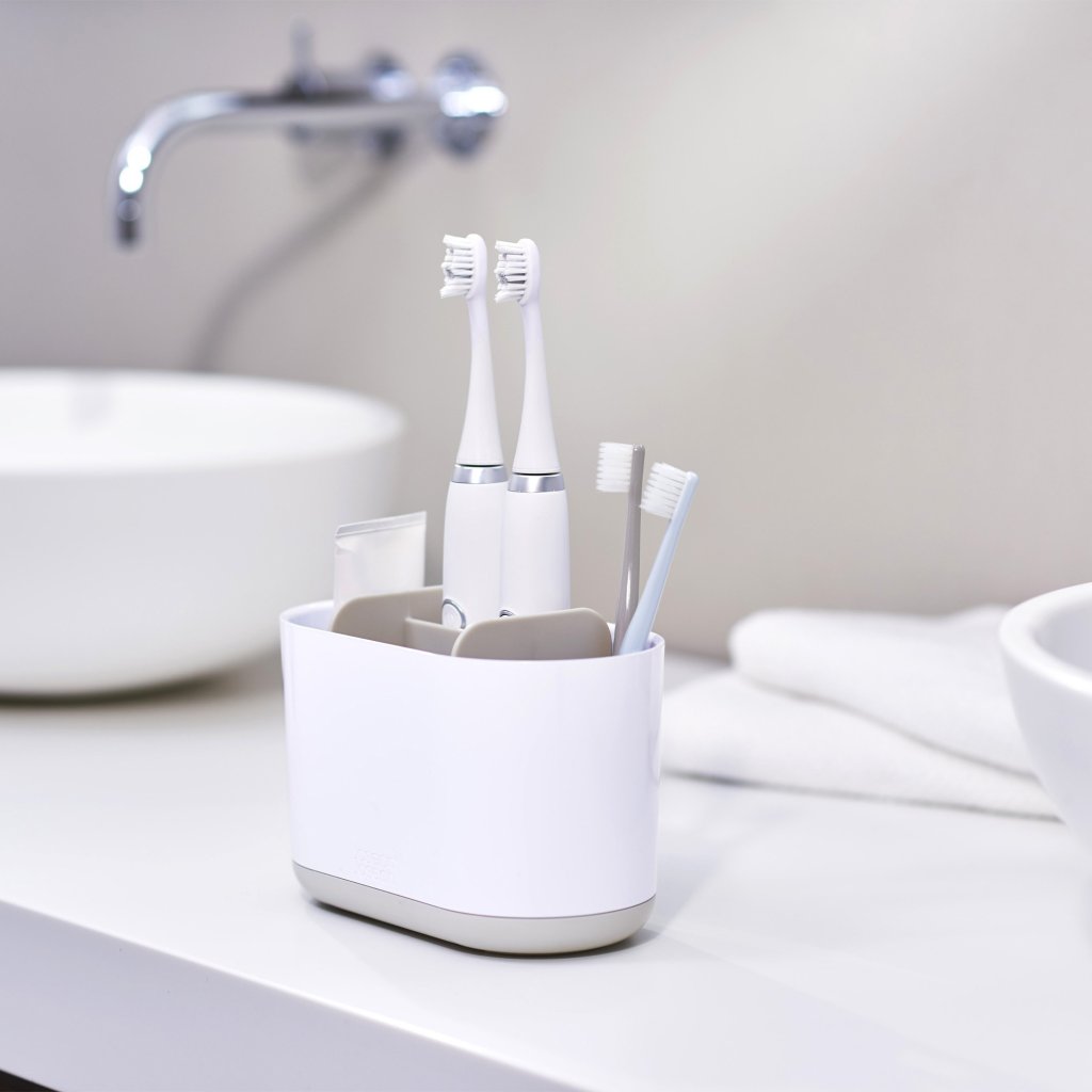 - Suportul pentru periuța de dinți Joseph Joseph DUO în culoarea alb oferă spațiu extins de depozitare pentru nevoile zilnice de igienă ale întregii familii.