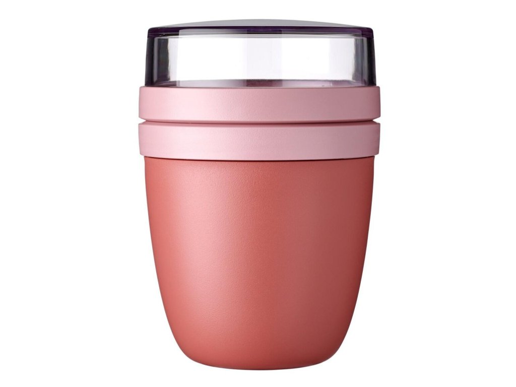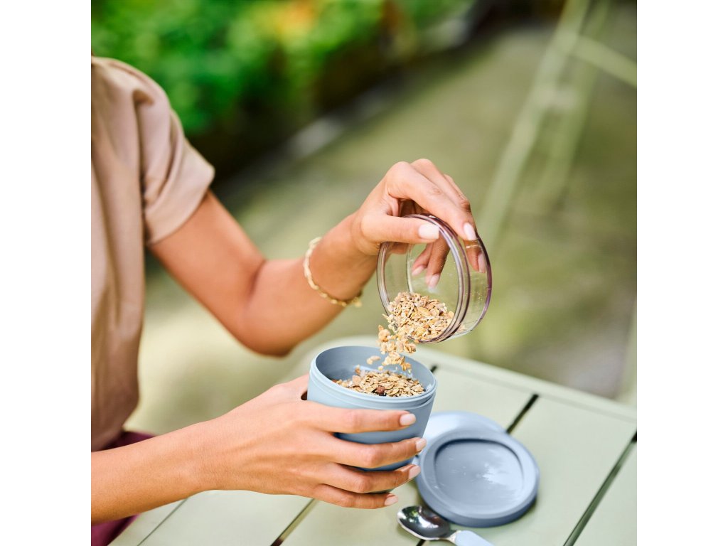 - recipientul transparent superior de 200 ml este ideal pentru muesli, fructe sau crutoane crocante fără riscul de a se uda
