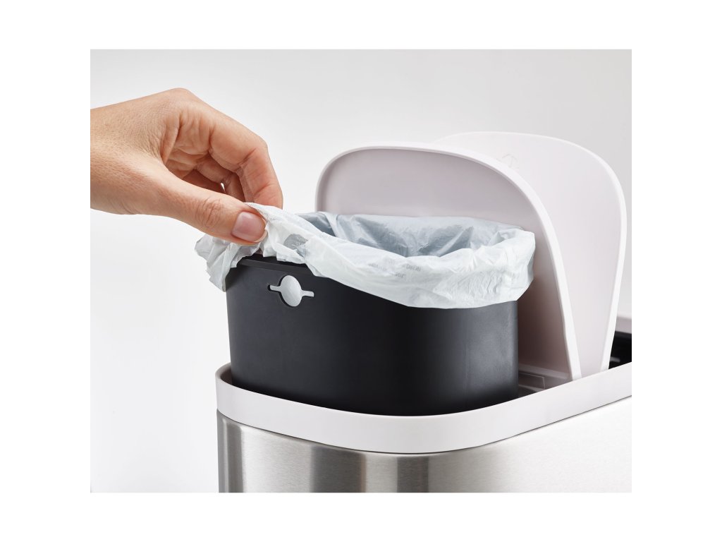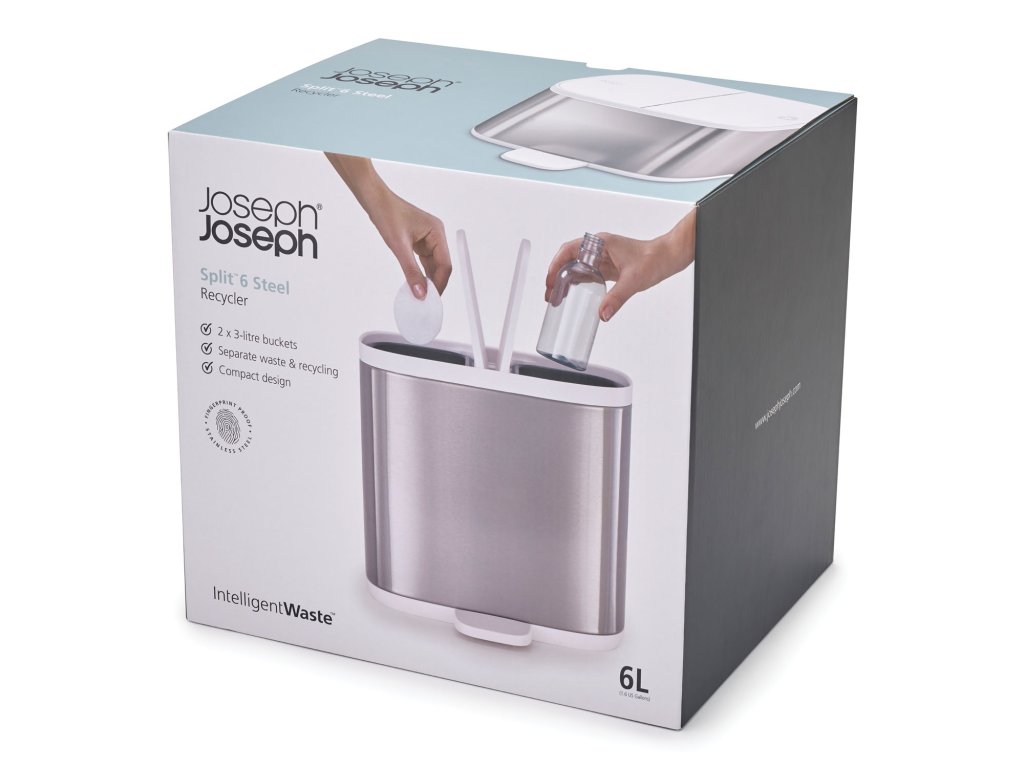 Reciclarea este adesea uitată în baie. Așa că compania Joseph Joseph a decis să rezolve problema. Coșul de gunoi Split are două containere și se deschide cu ajutorul unei pedale. Capacitatea totală a coșului principal este de 6 l, în timp ce carcasa este realizată din oțel inoxidabil.