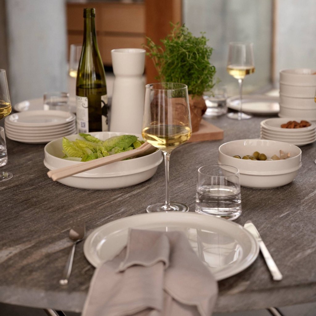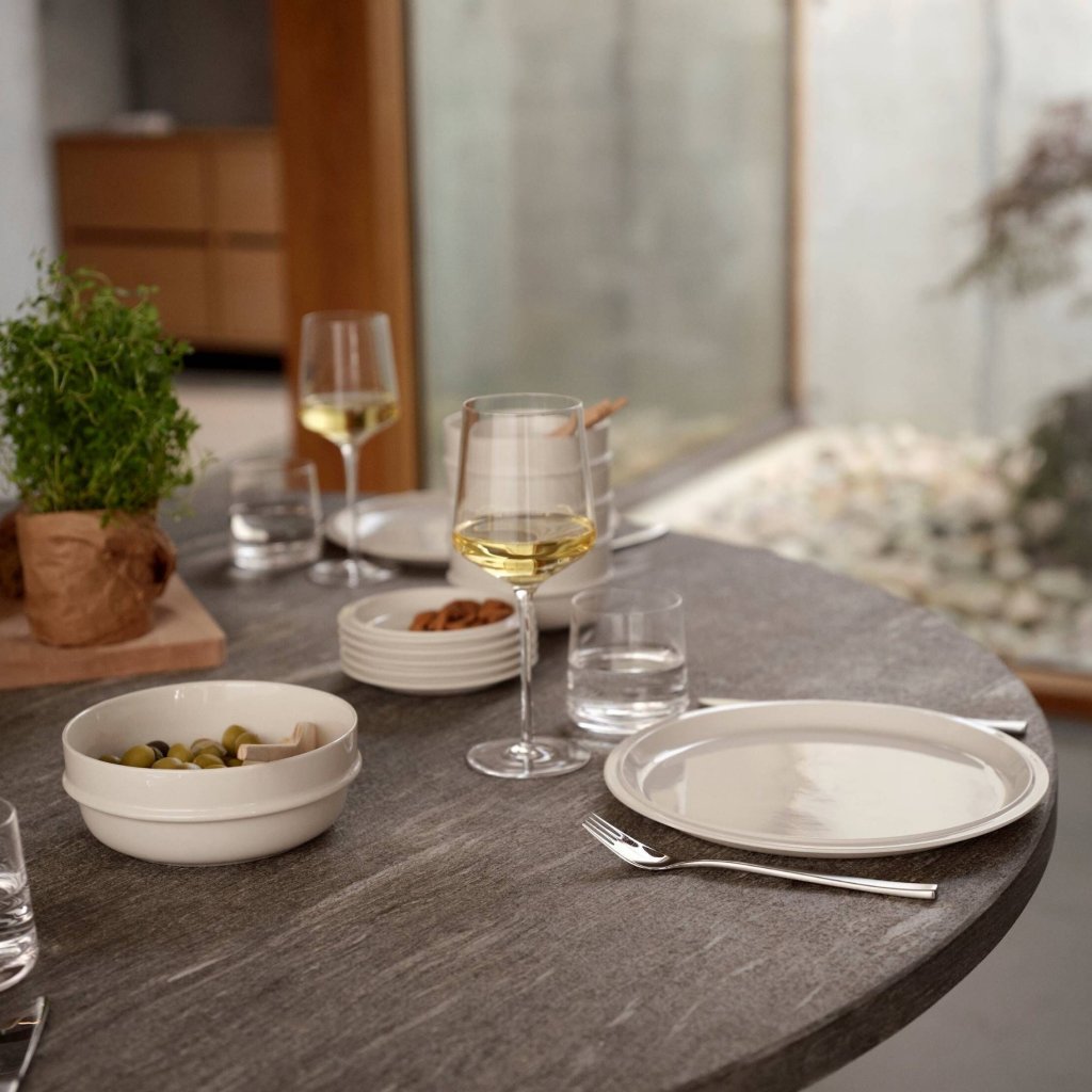- Farfuria porțelan din seria Zone Denmark EAU aduce un design minimalist și atemporal pentru mesele de zi cu zi și festive.