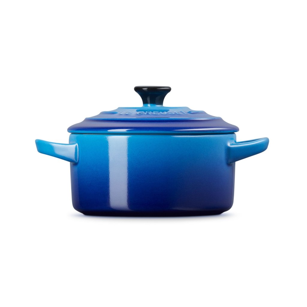 - Micul vas ceramic oală de gătit Le Creuset în nuanța AZURE este ideal pentru servirea porțiilor individuale, a sosurilor sau a mâncărurilor mai mici.